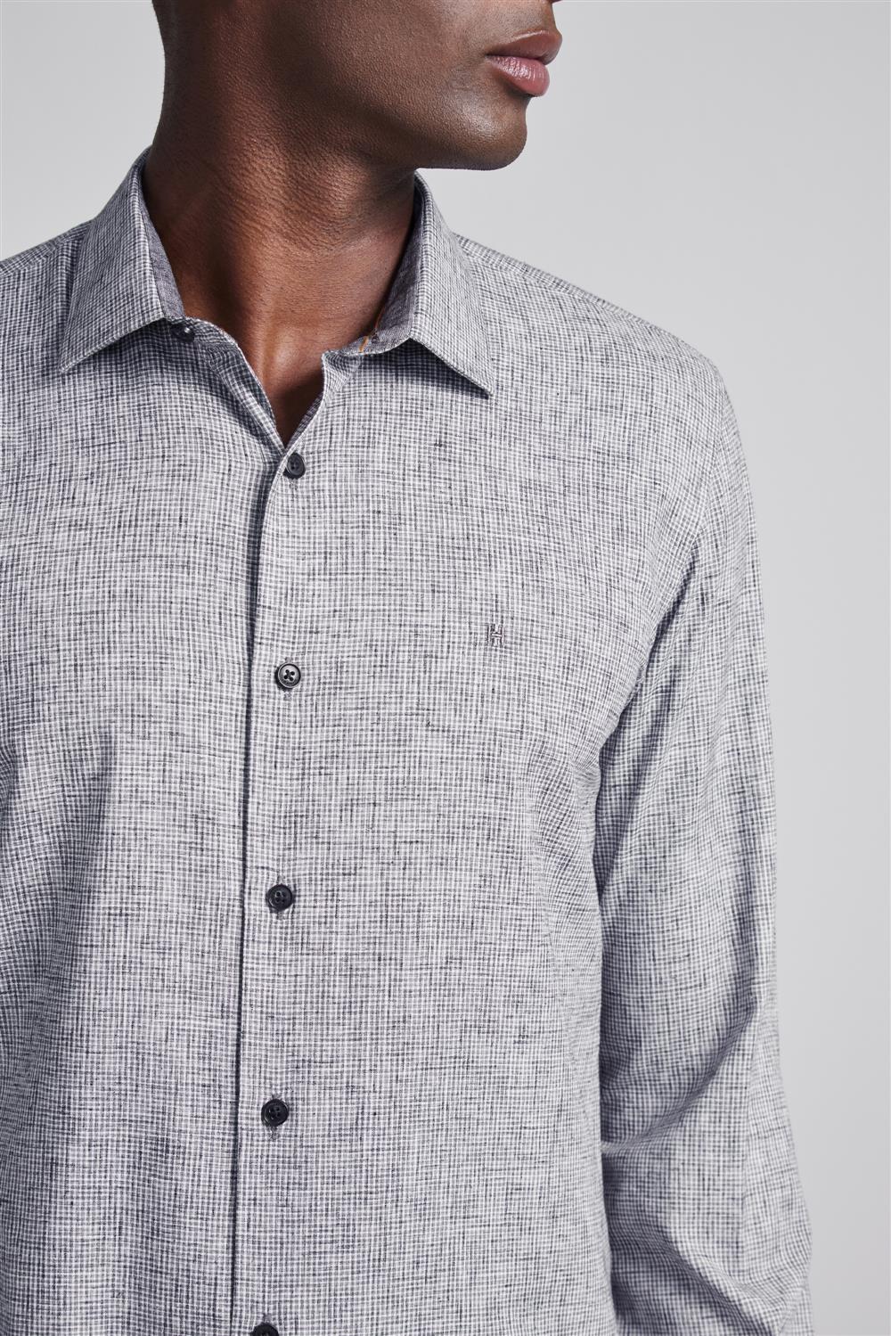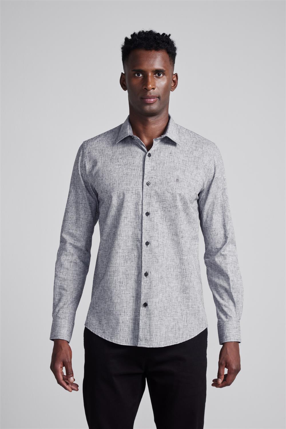 A Camisa Slim Fit é confeccionada em 51% Algodão e 49% Tencel, une a suavidade do algodão à fluidez sustentável do Tencel. . A peça conta com colarinho Londres.