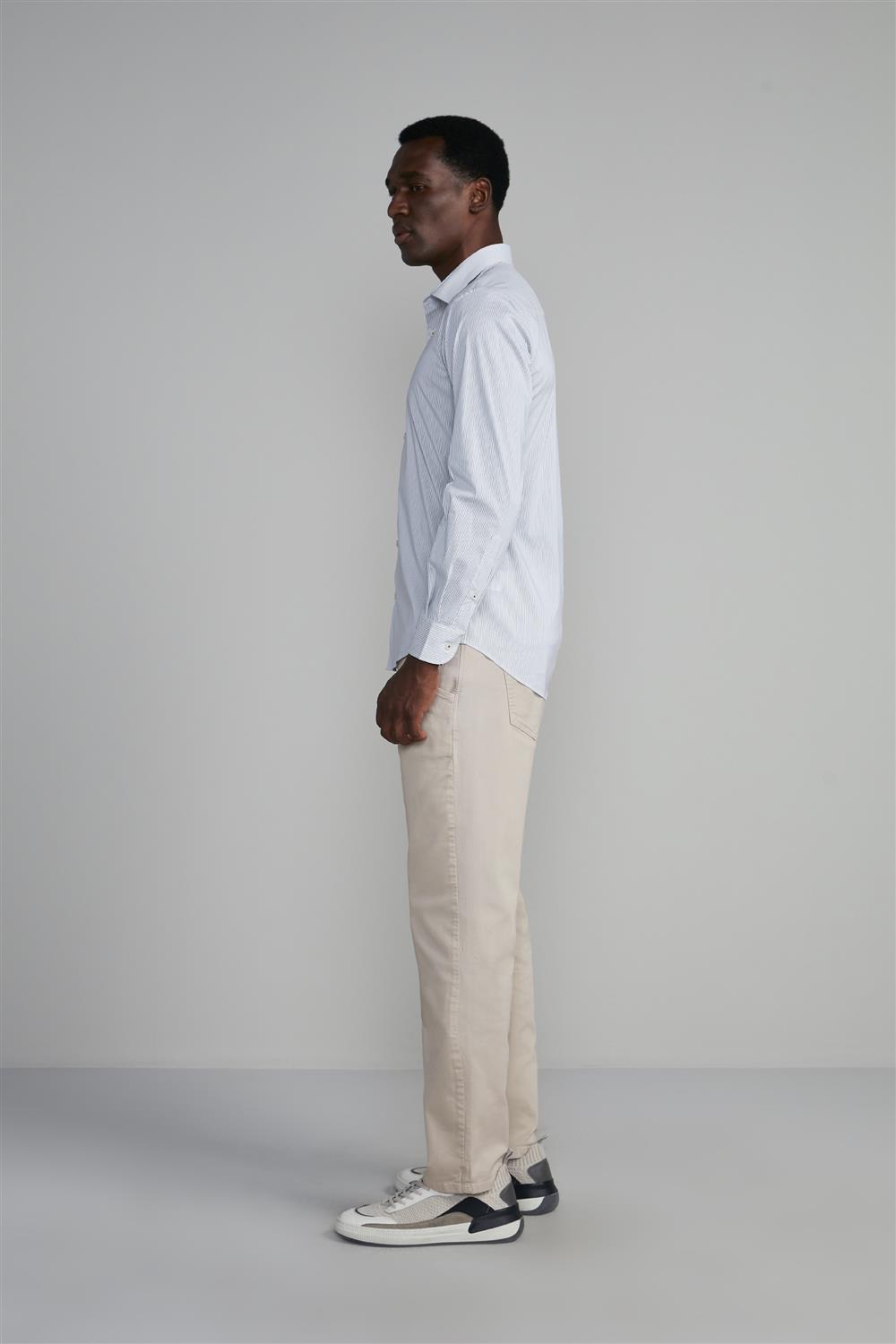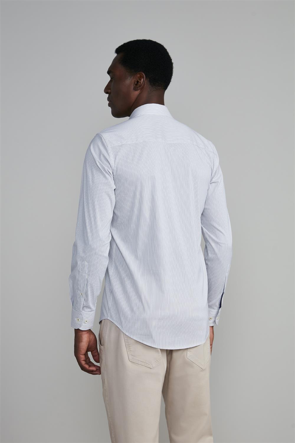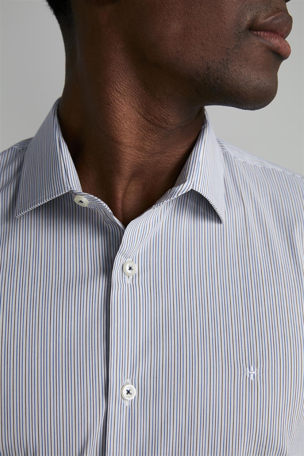 A Camisa Slim Fit é confeccionada em 70% Algodão, 27% Poliamida e 3% Elastano. A peça conta com colarinho Milano.