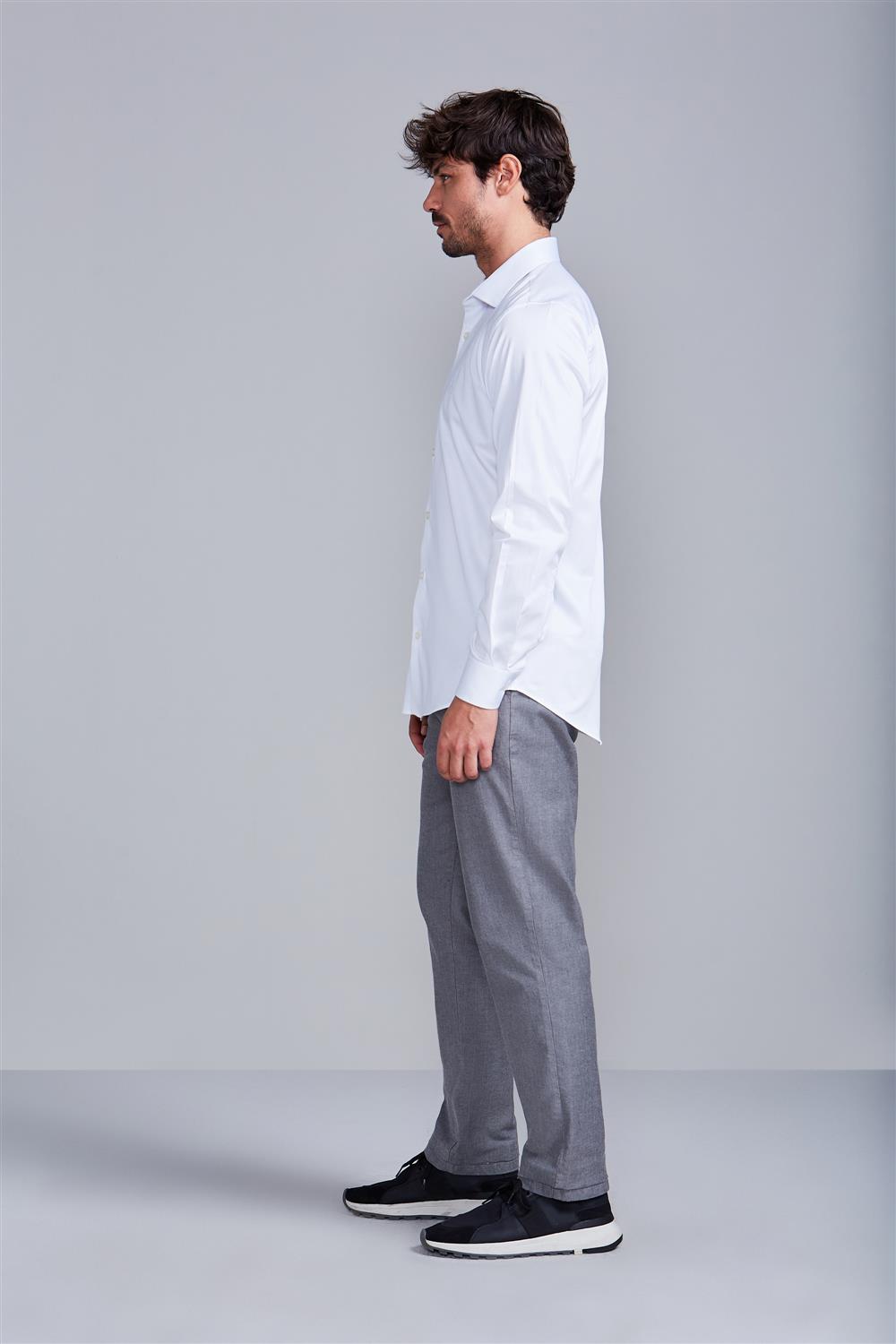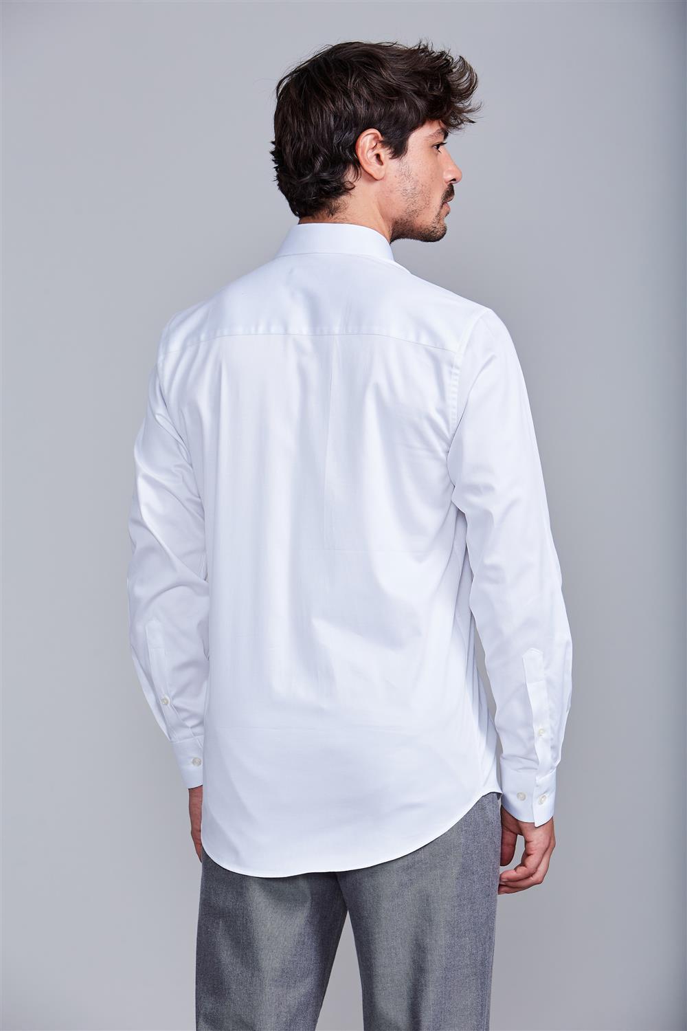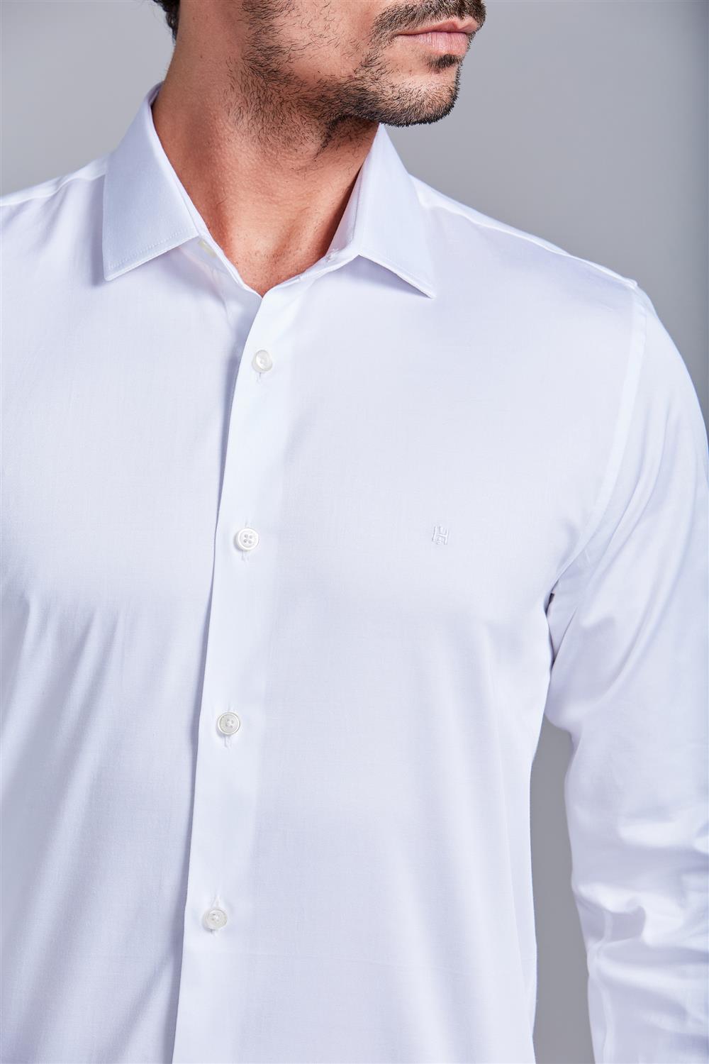 A Camisa Slim Fit é confeccionada em 98% Algodão Pima e 2% Elastano, o Algodão Pima oferecendo uma suavidade incomparável, brilho natural e uma durabilidade excepcional. A peça conta com colarinho Milano.