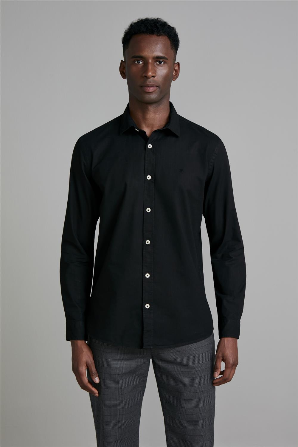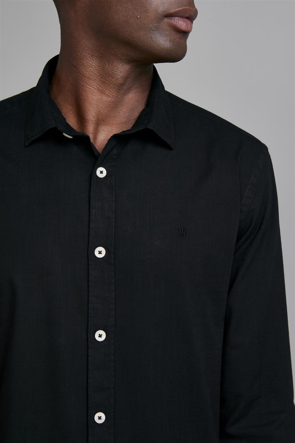 Camisa Slub Slim Fit - Preto