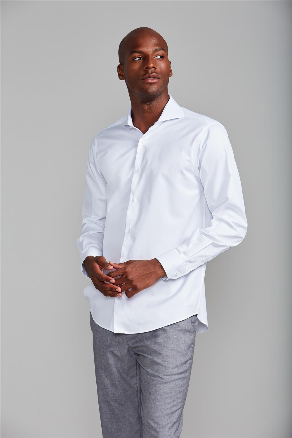 As camisas sociais são ótimas opções para ambientes de trabalho por ajudarem a criar uma aparência mais polida e sofisticada, transmitindo confiança e profissionalismo. Opte sempre por camisas de cores sólidas ou com padrões sutis, que estejam bem ajustadas ao corpo. Certifique-se de que a camisa esteja bem passada e ajustada ao corpo. Você pode também usar uma gravata para um toque formal adicional.