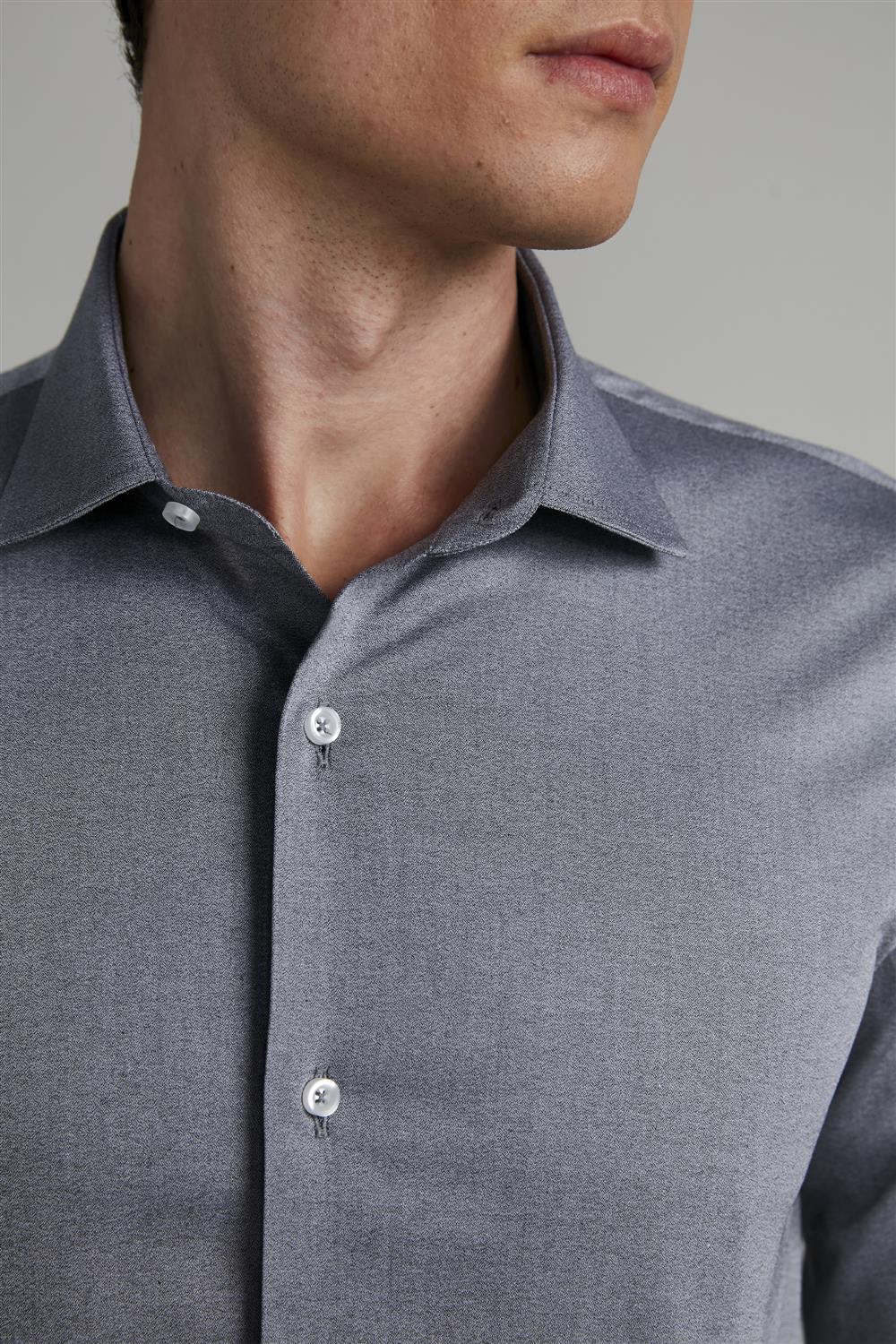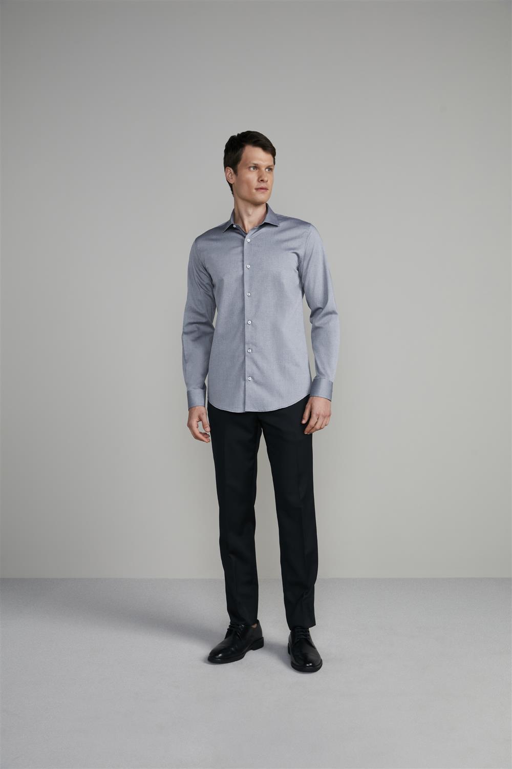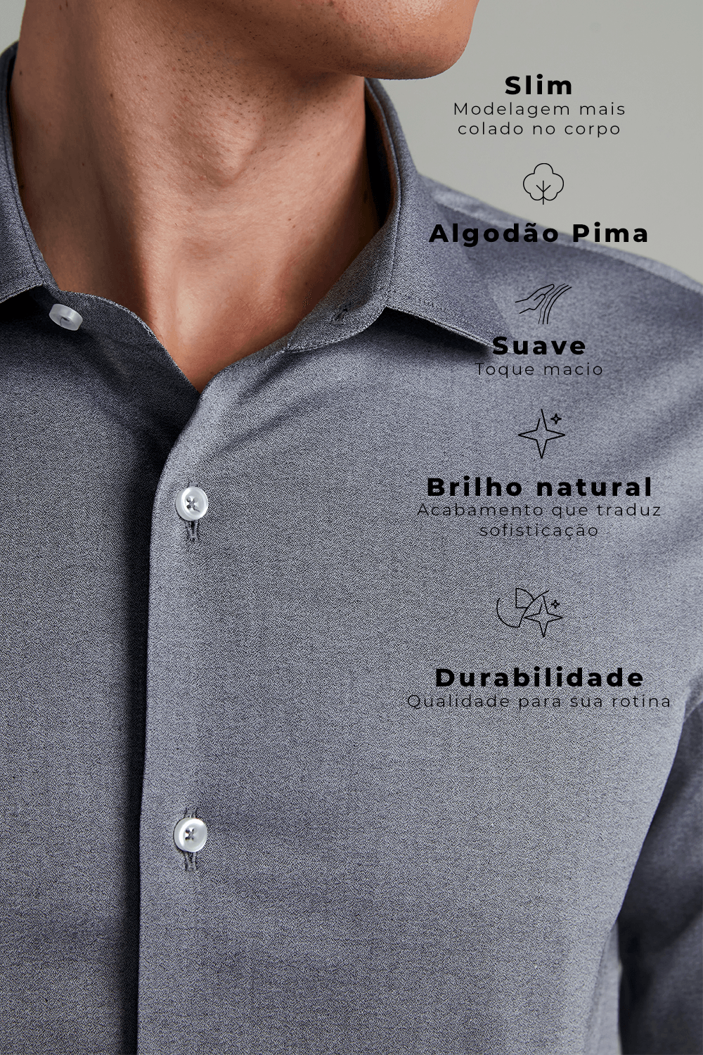 A Camisa Social Slim Fit é confeccionada em 100% Algodão Pima, oferecendo uma suavidade incomparável, brilho natural e uma durabilidade excepcional. A peça conta com colarinho New York.