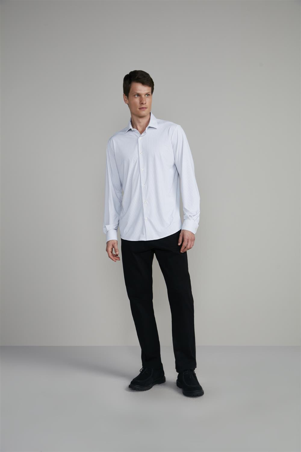 Busca por um look completo? Combine com calças chino, jeans escuros ou até mesmo calças sociais. Complete o visual com sapatos elegantes e adicione um blazer se desejar um toque mais formal.