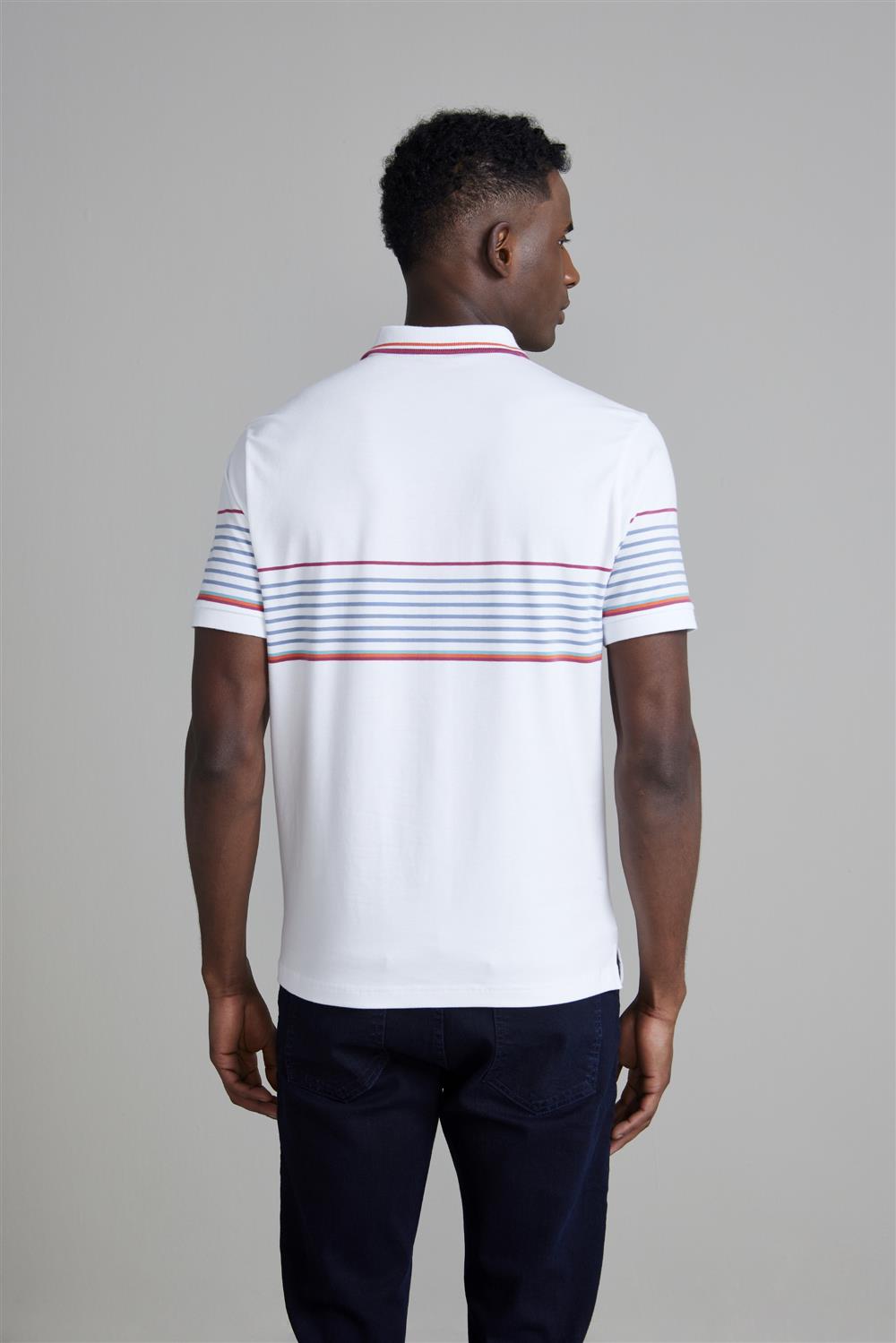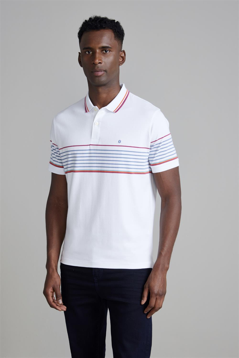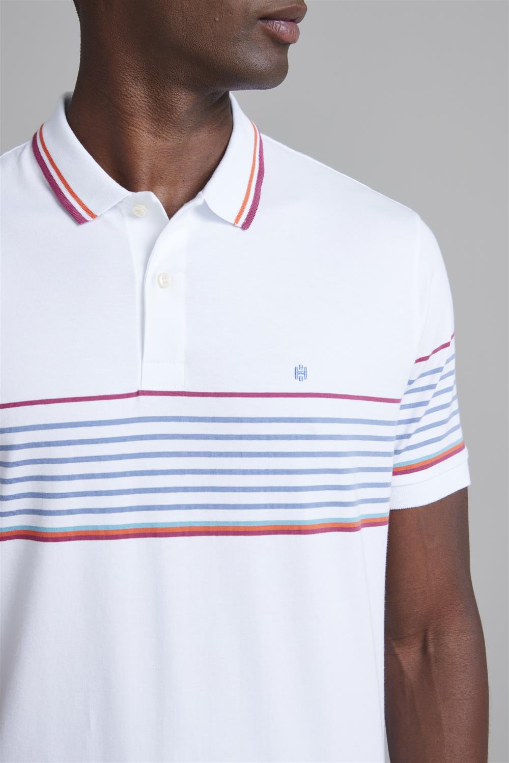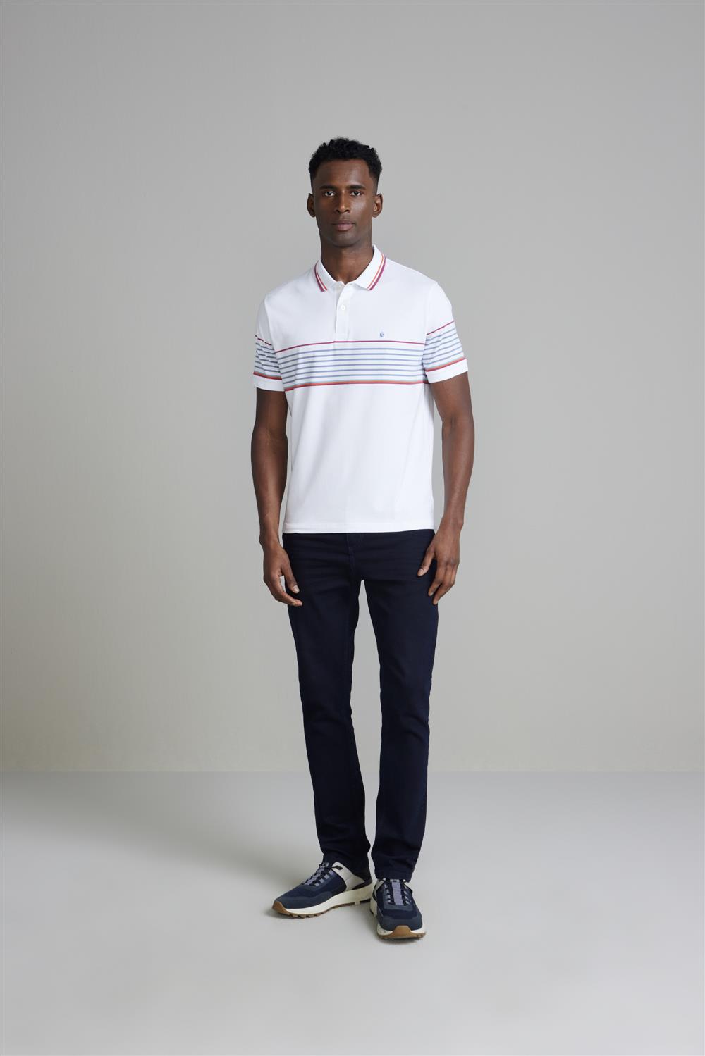 Camisa Polo Malha Comfort - Branco / Azul Jeans