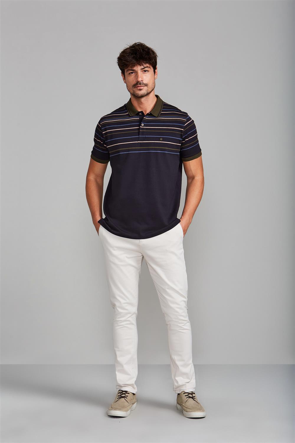 Camisa Polo Malha Comfort - Preto / Verde Azeitona