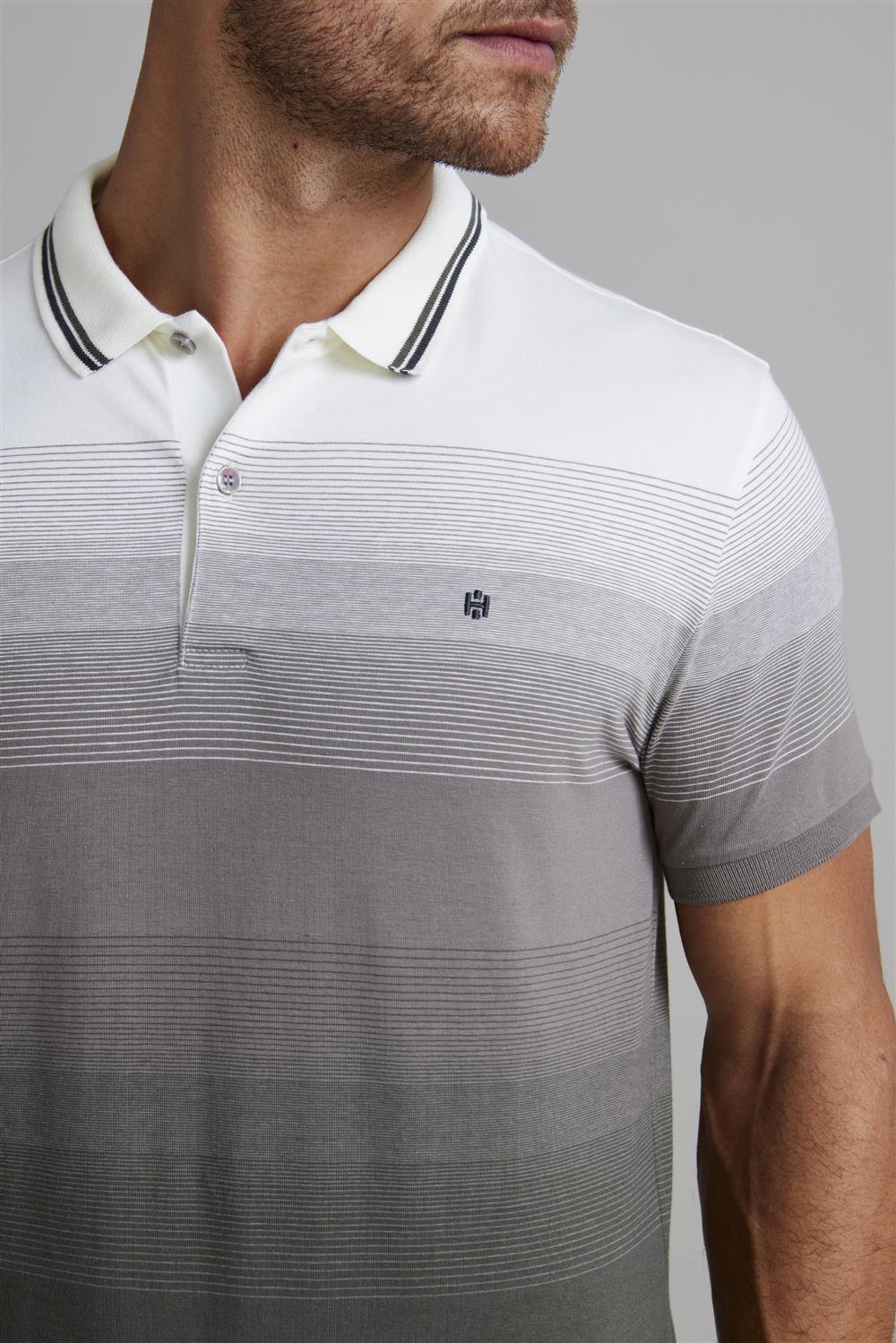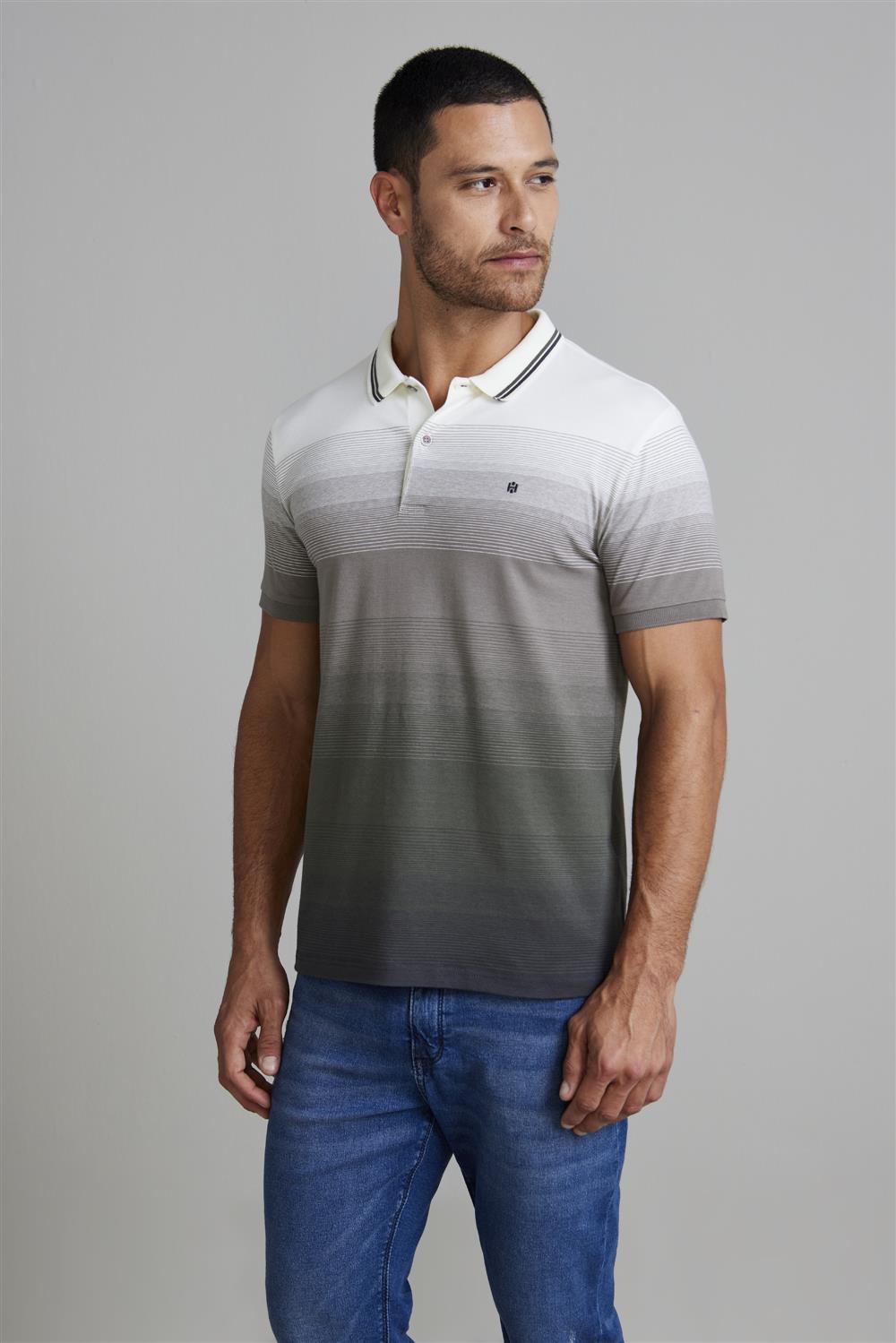 Camisa Polo Malha Comfort - Creme / Cinza Chumbo