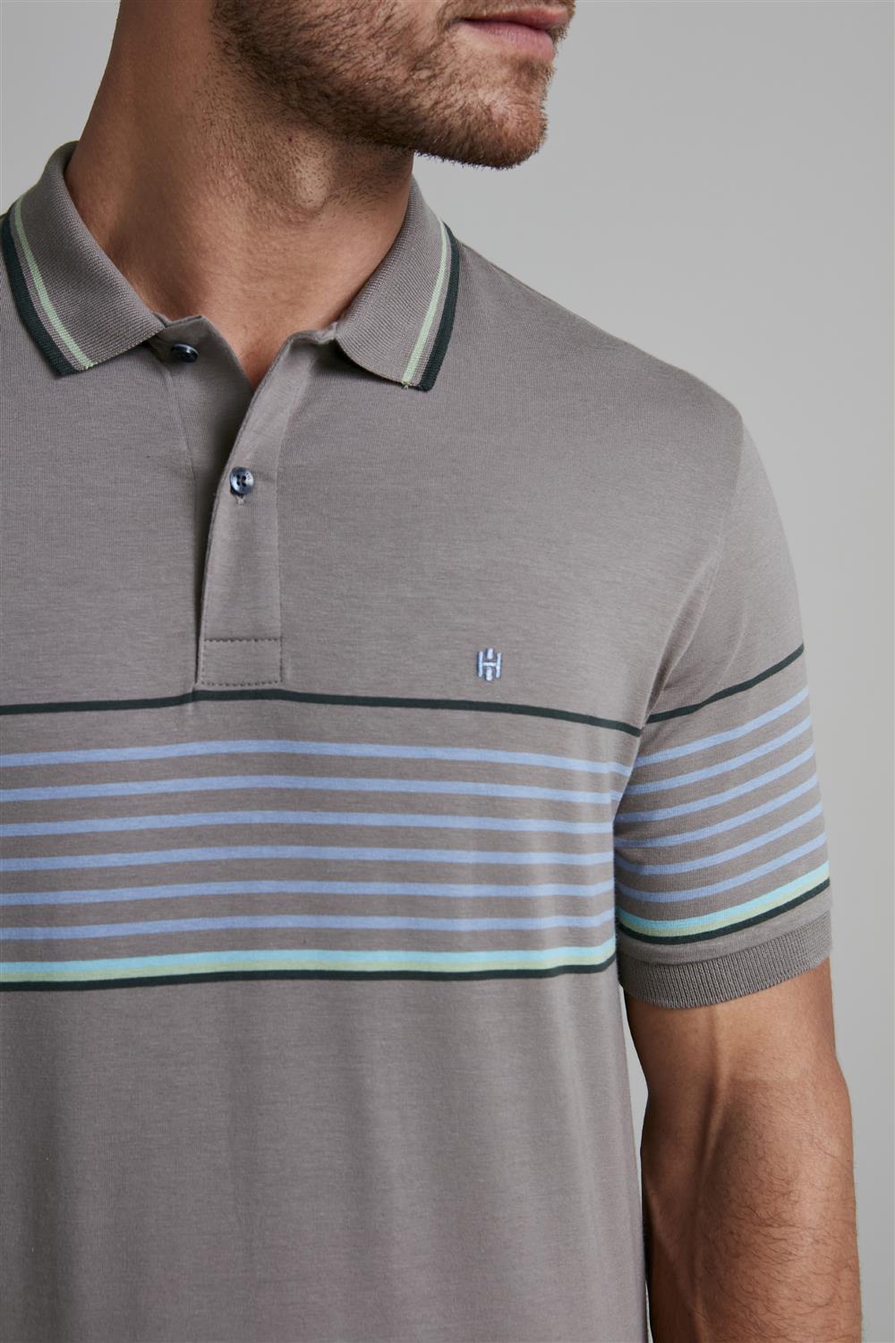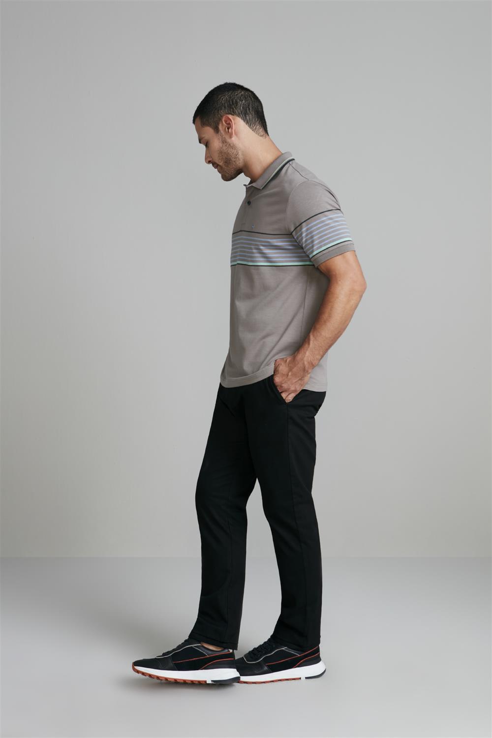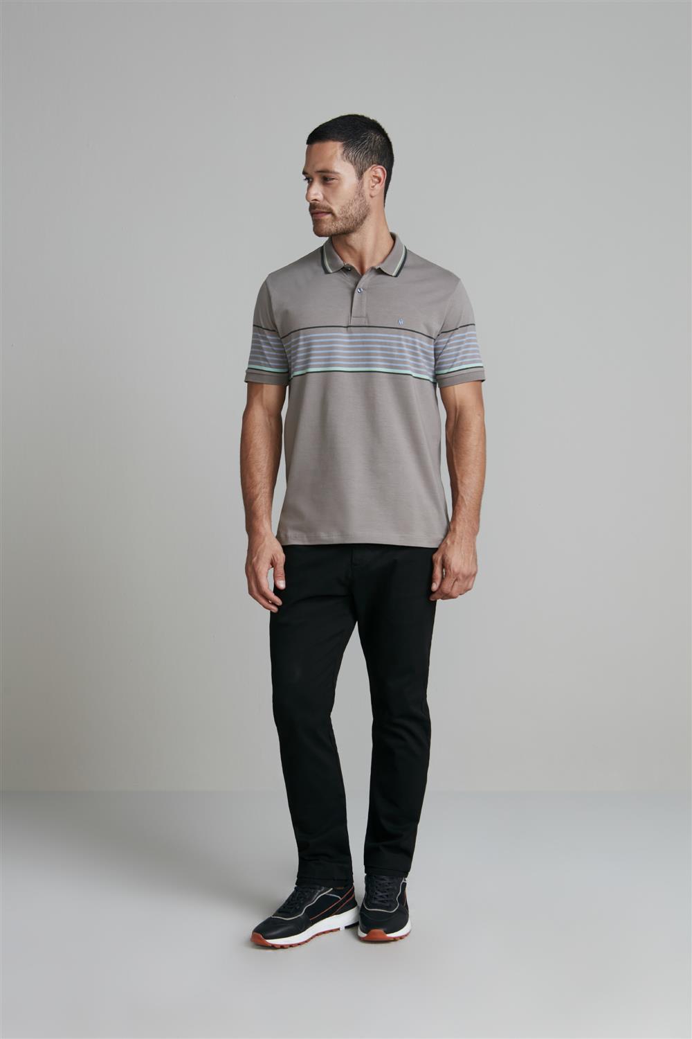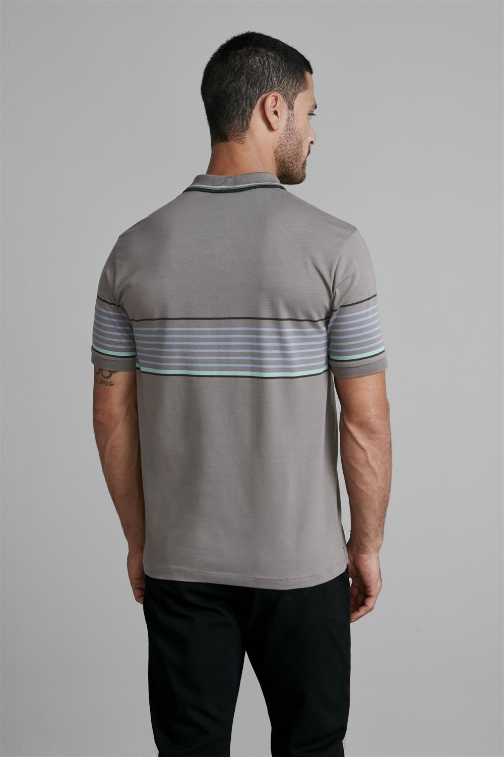 Camisa Polo Malha Comfort - Cinza Concreto / Azul Jeans