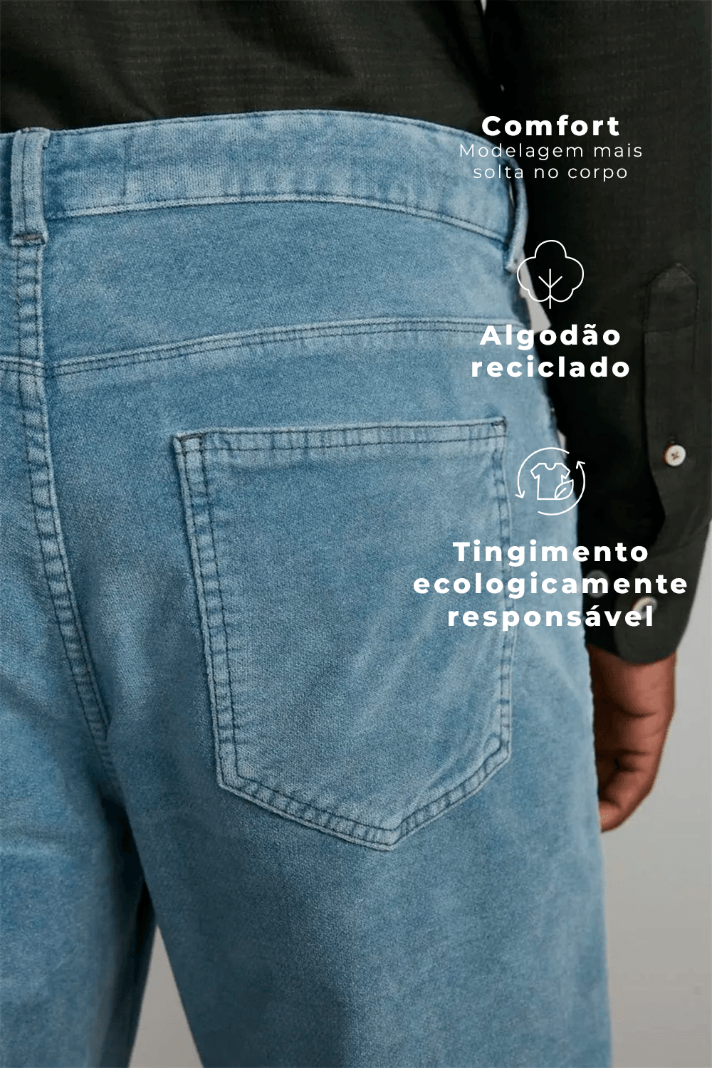 A Calça Jeans Comfort é confeccionada em 98% Algodão e 2% Elastano.