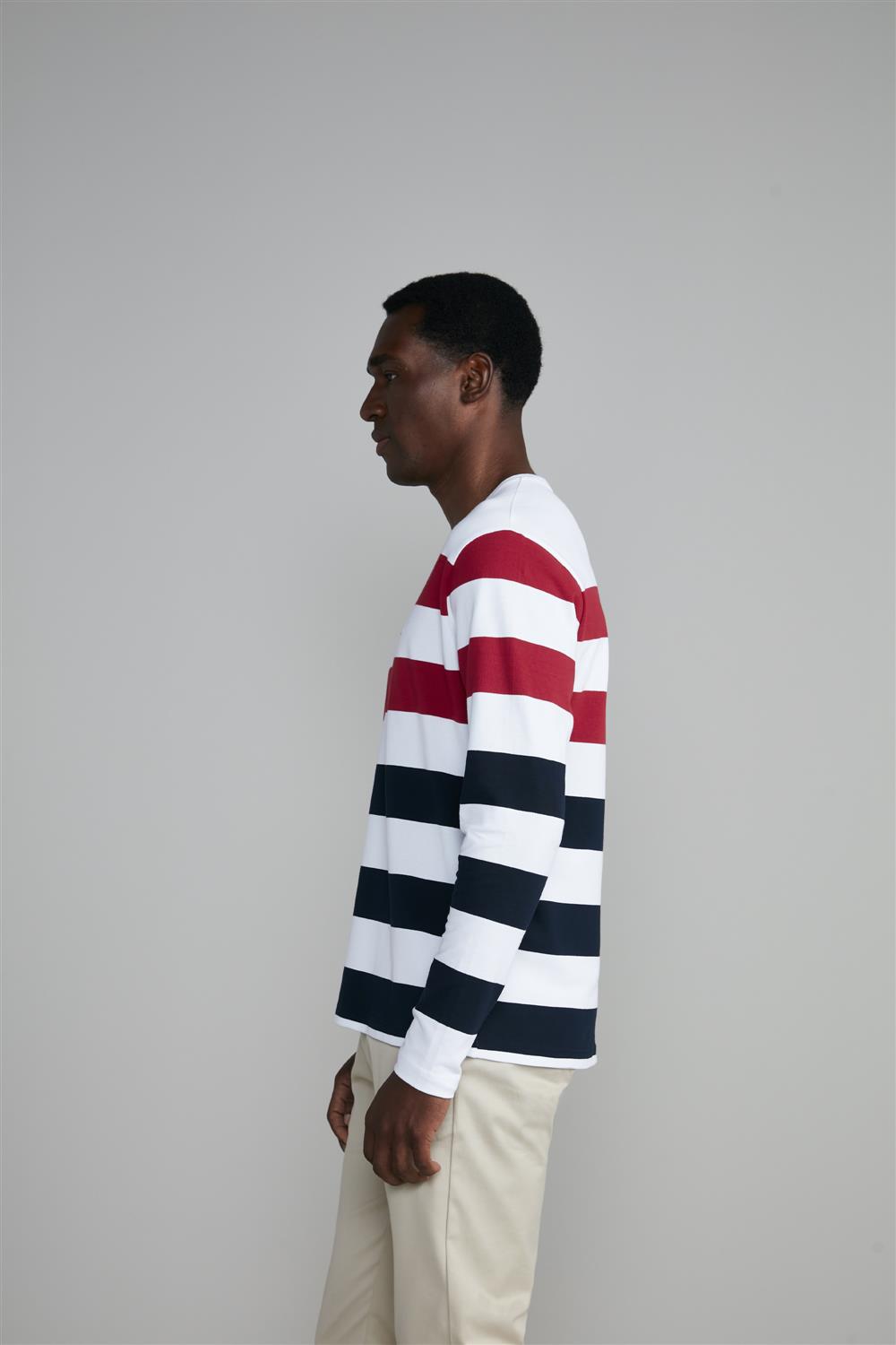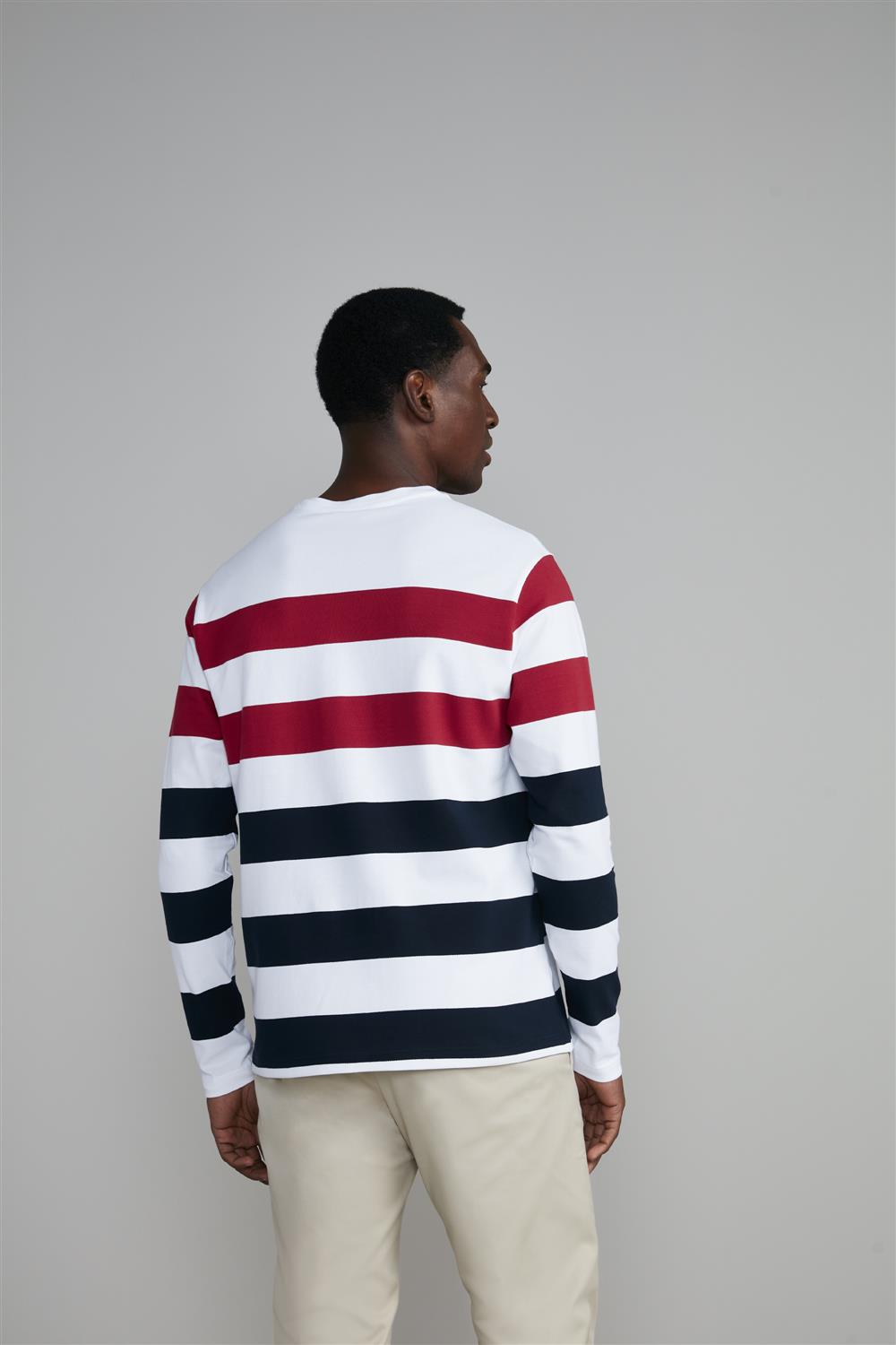 Camiseta Manga Longa Piquet Comfort - Branco / Azul Marinho