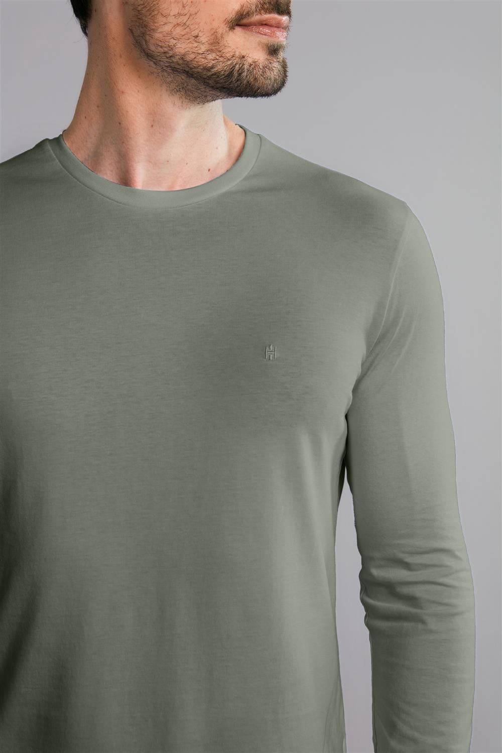 Camiseta Manga Longa Premium Malha Slim Fit - Verde Escuro