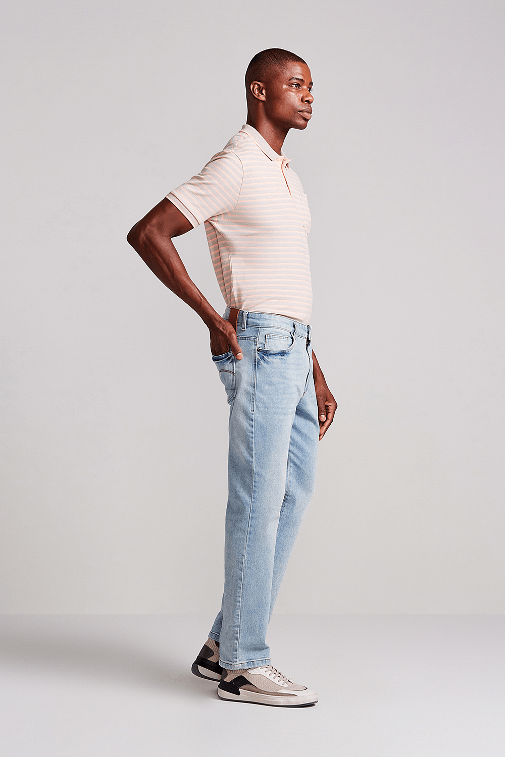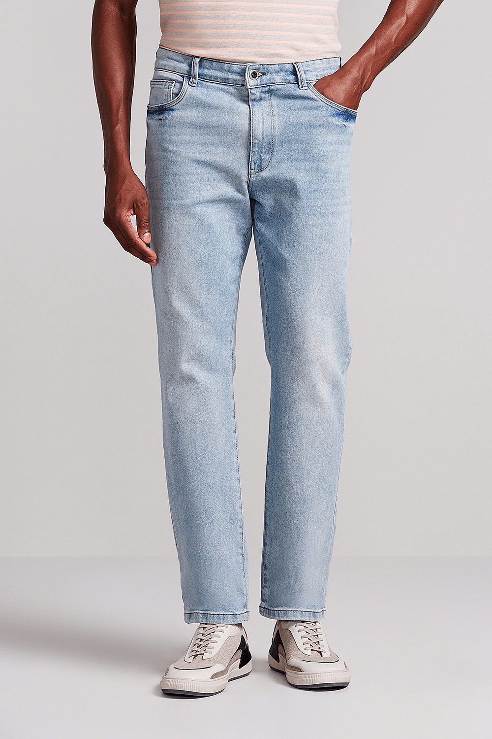 Confeccionada com a modelagem Comfort, a peça apresenta cintura média, um corte clássico e a barra média.