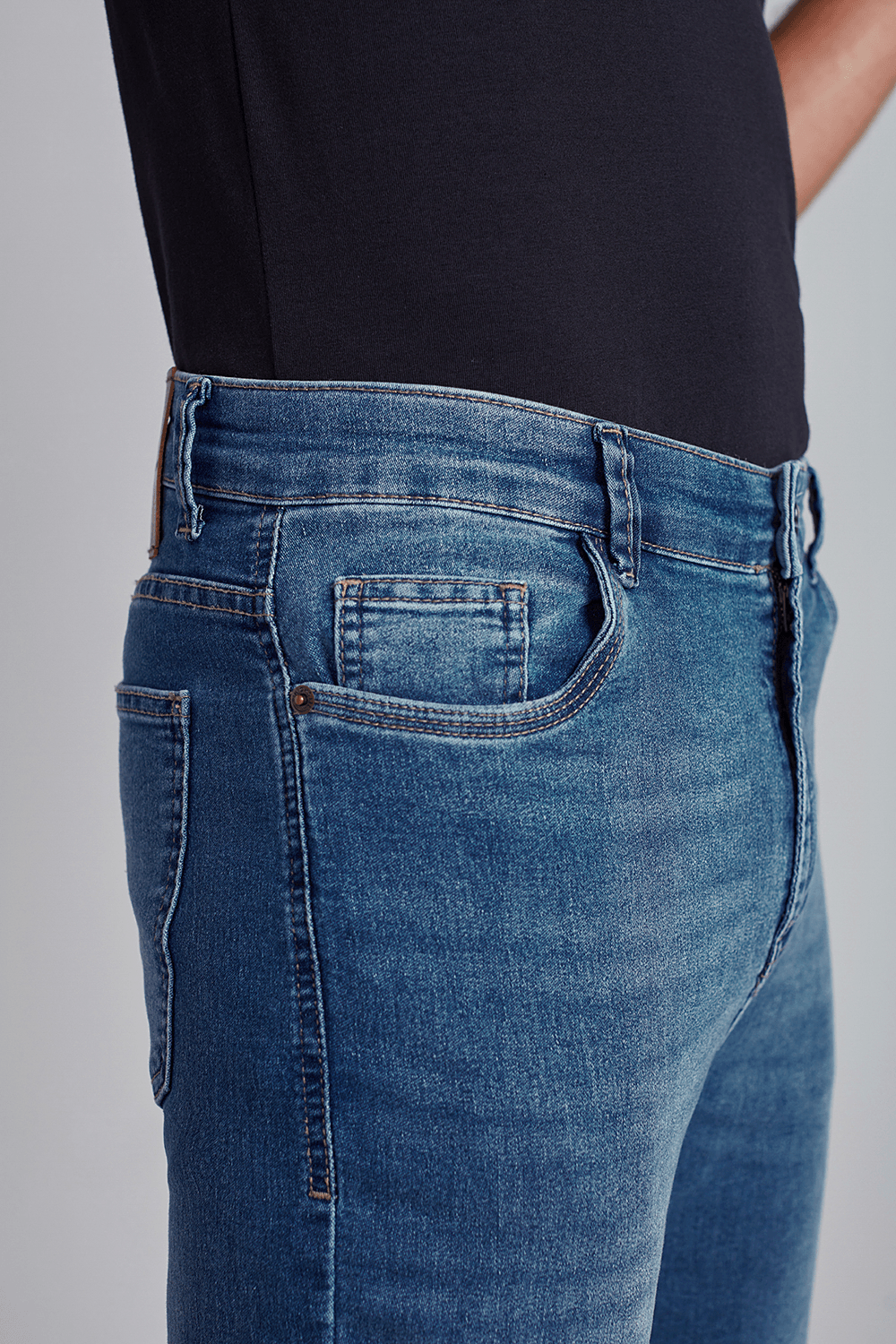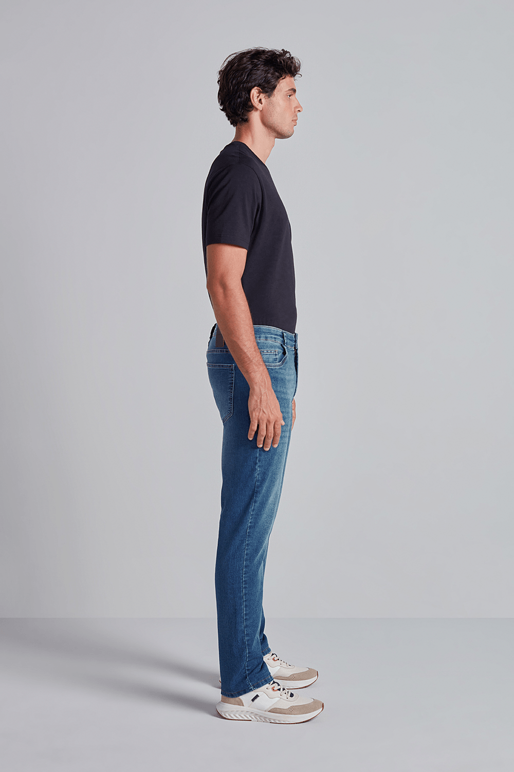 Confeccionada com a modelagem Comfort, a peça apresenta cintura média, um corte clássico e a barra média.