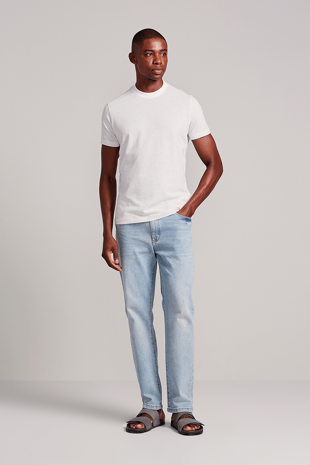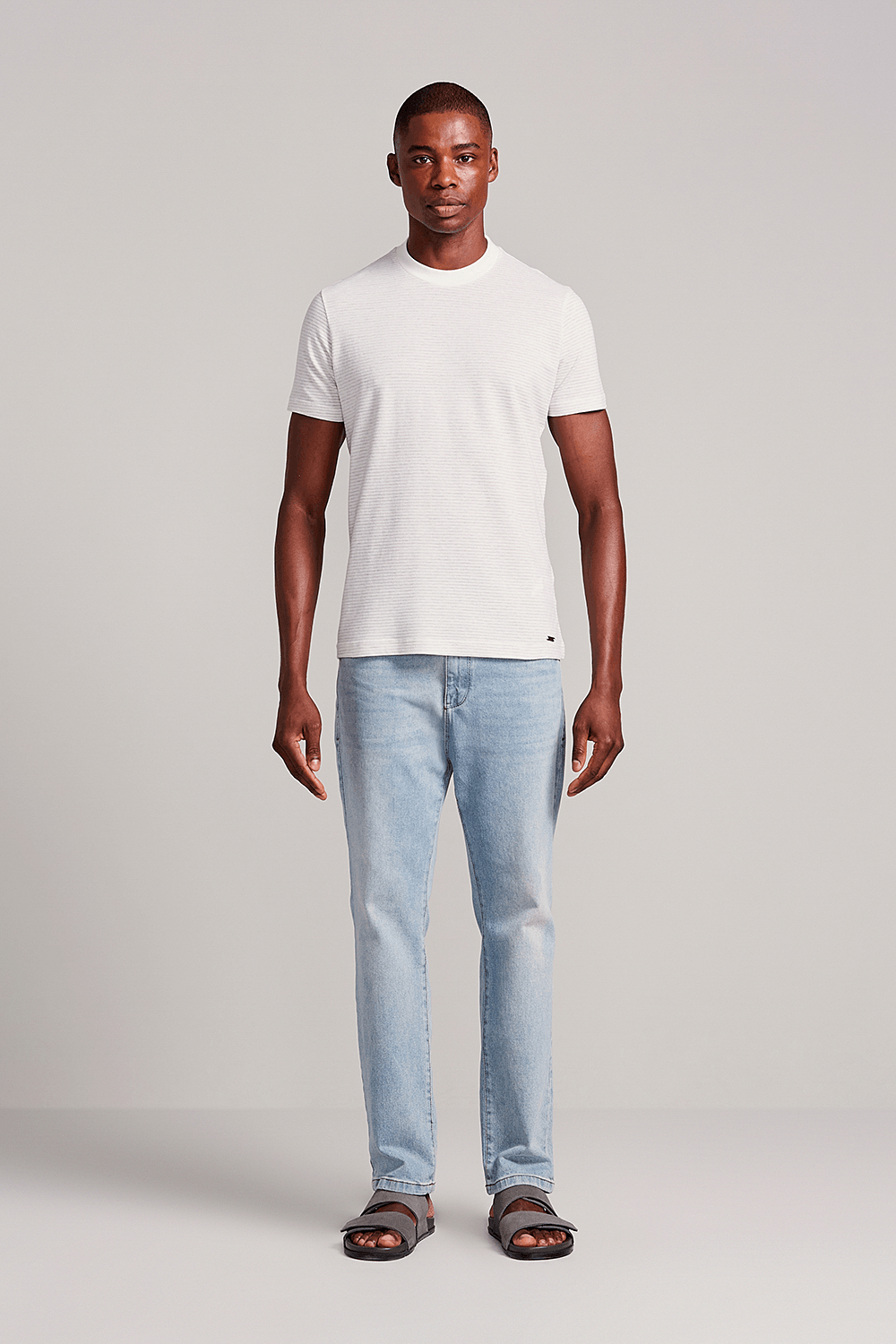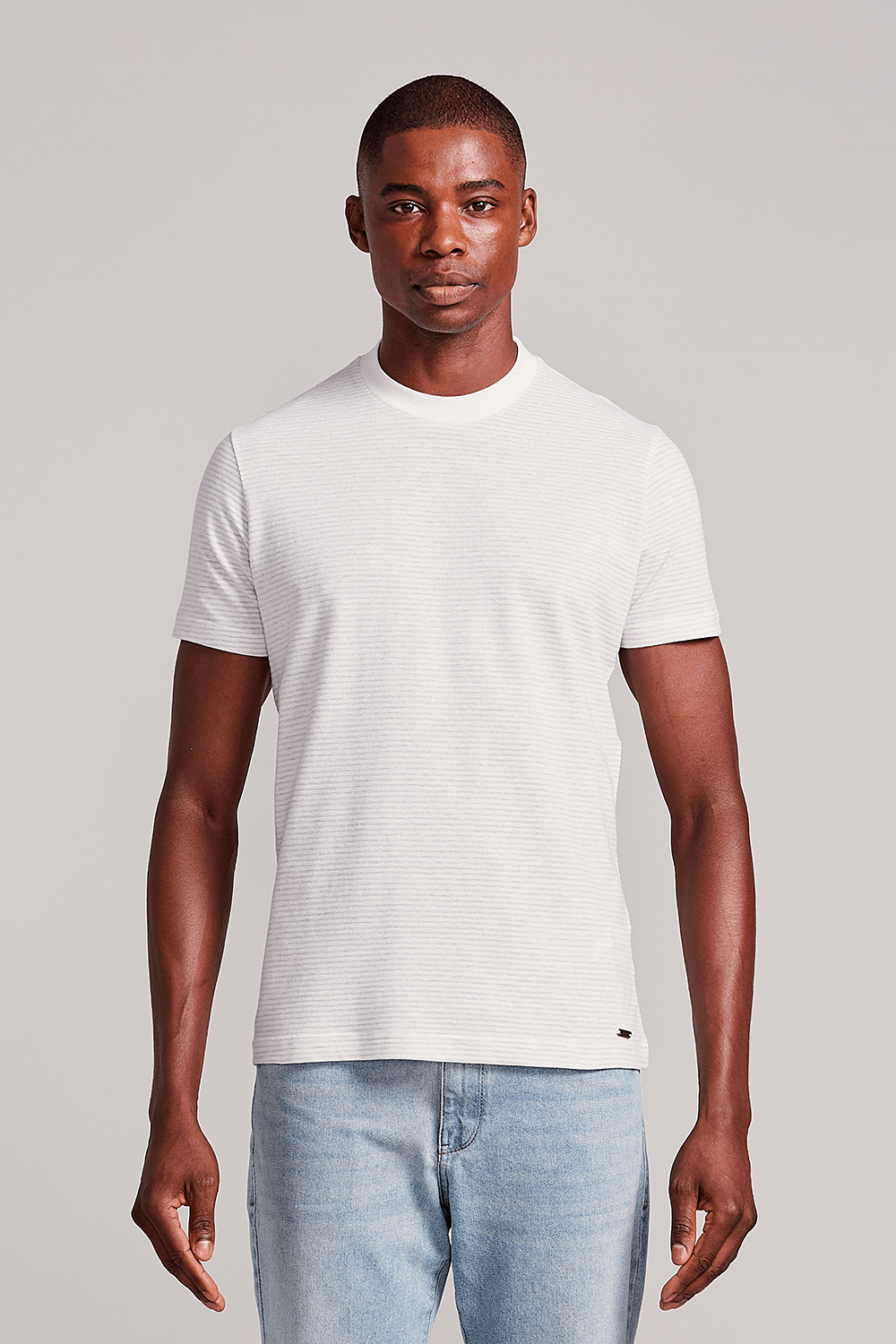 A Camiseta Malha Slim Fit é confeccionada em 96% Algodão e 4% Elastano, e é confeccionada em Meia Malha, é composta principalmente por Algodão e Elastano, tornando-a extremamente leve e macia. Além disso, possui ótima elasticidade, fazendo com que a peça tenha bom caimento ao corpo.