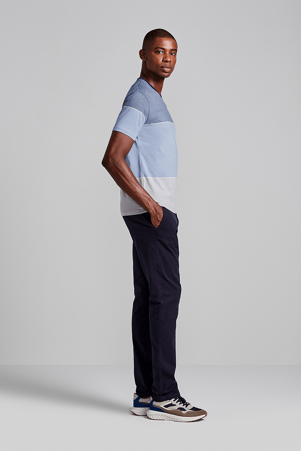 A Camiseta Malha Comfort é confeccionada em 96% Algodão e 4% Elastano, e é confeccionada em Meia Malha, é composta principalmente por Algodão e Elastano, tornando-a extremamente leve e macia. Além disso, possui ótima elasticidade, fazendo com que a peça tenha bom caimento ao corpo.