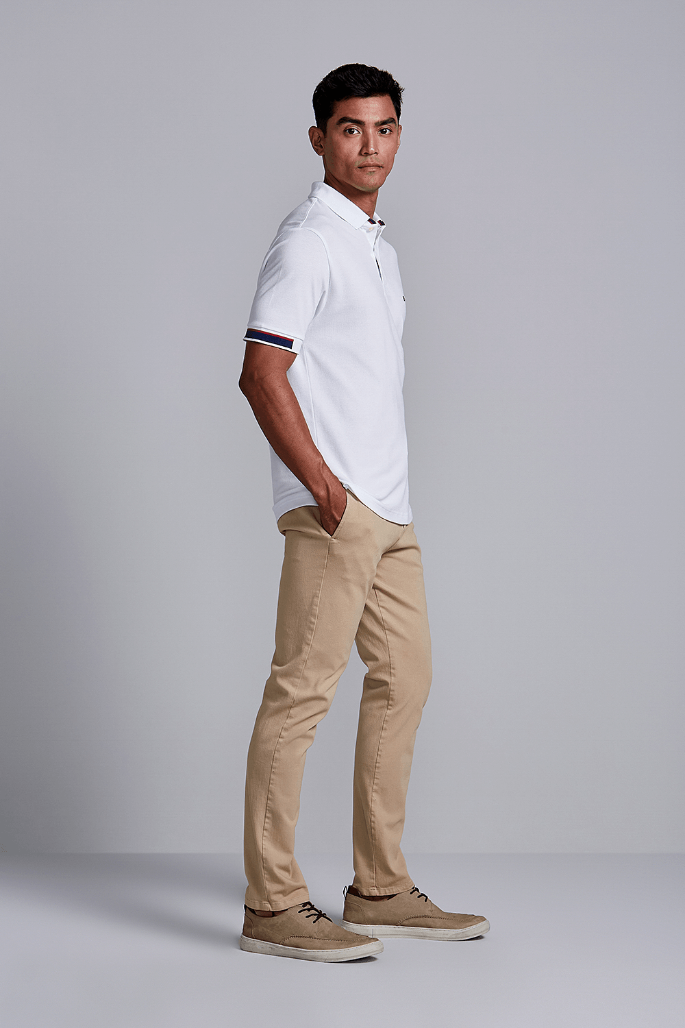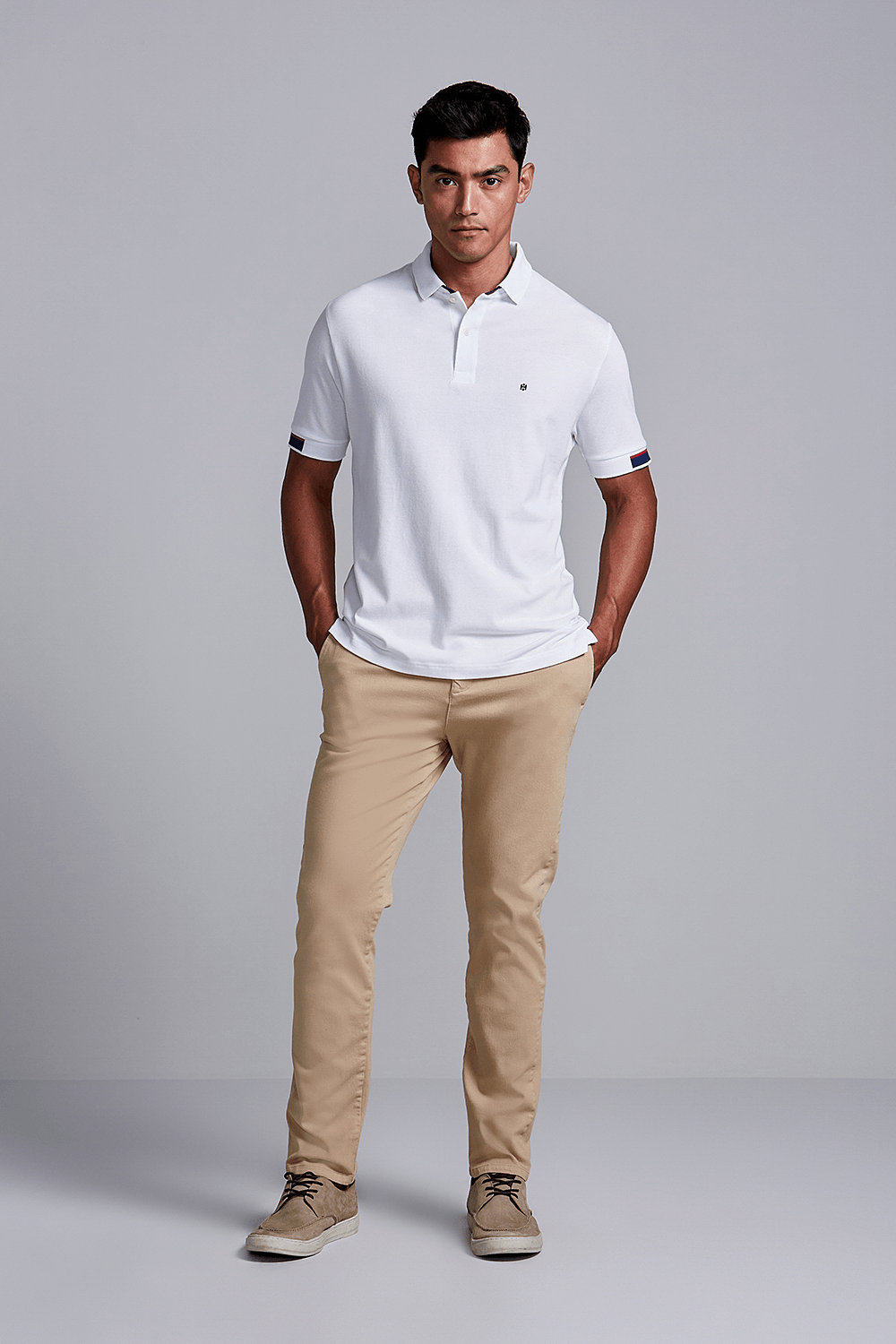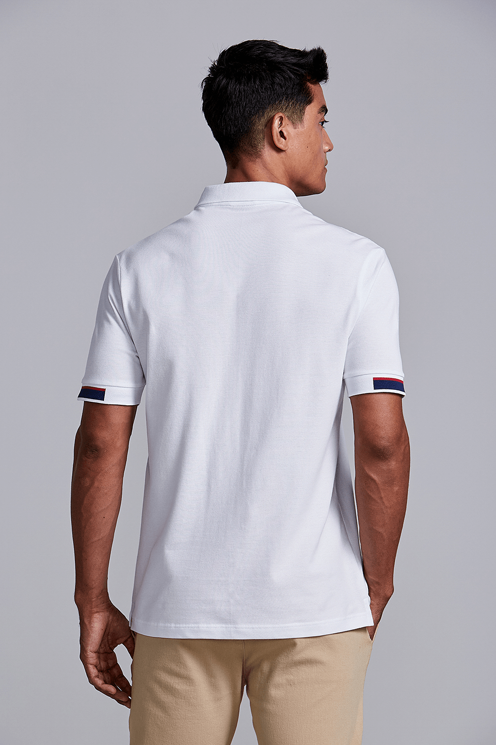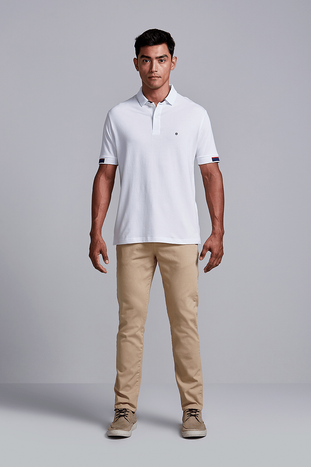 A Camisa Polo Piquet Comfort é confeccionada em 98% Algodão e 2% Elastano e é confeccionada em Piquet, sua estrutura possui micro furos que deixam a pele respirar melhor. Essa união de materiais proporciona ao tecido um ótimo caimento e leveza, além do toque macio, o tecido se destaca por seu conforto e durabilidade.