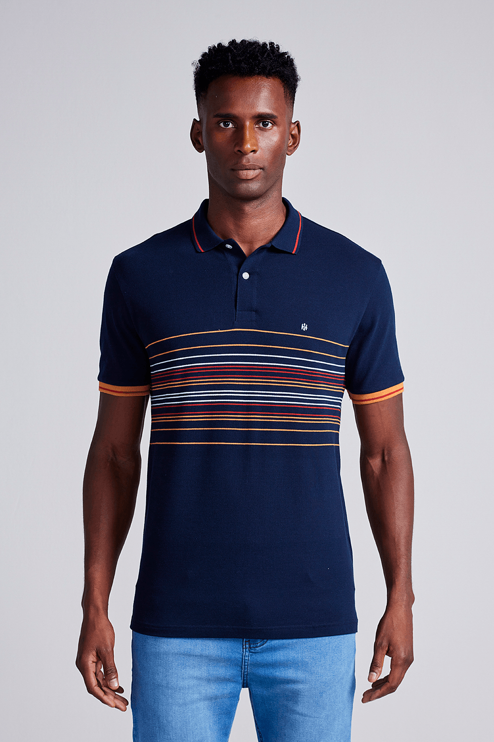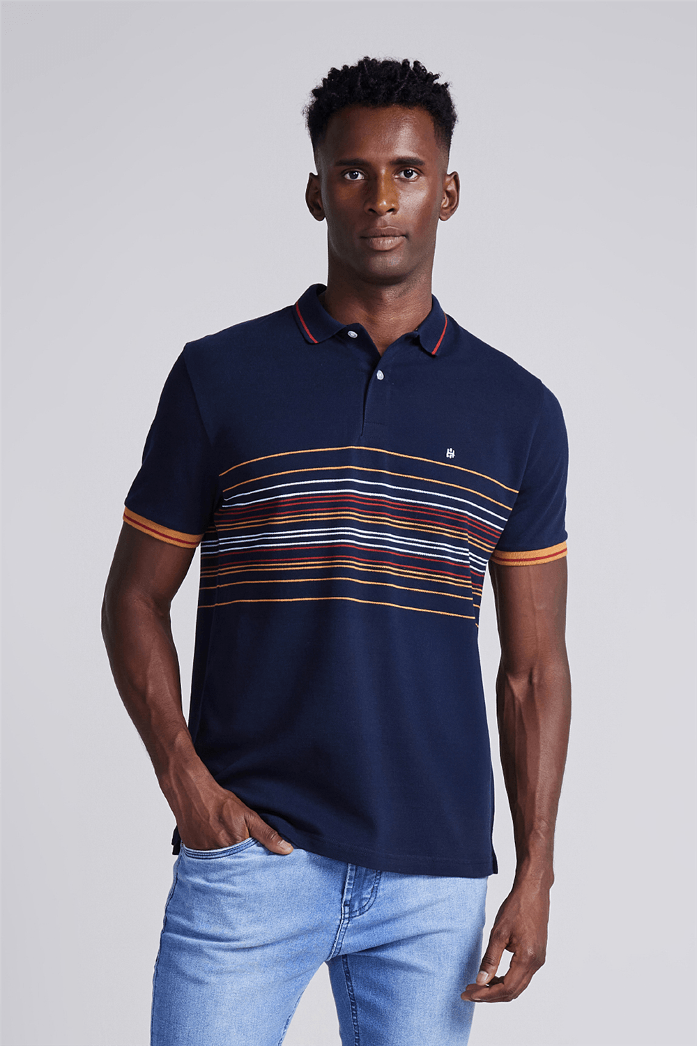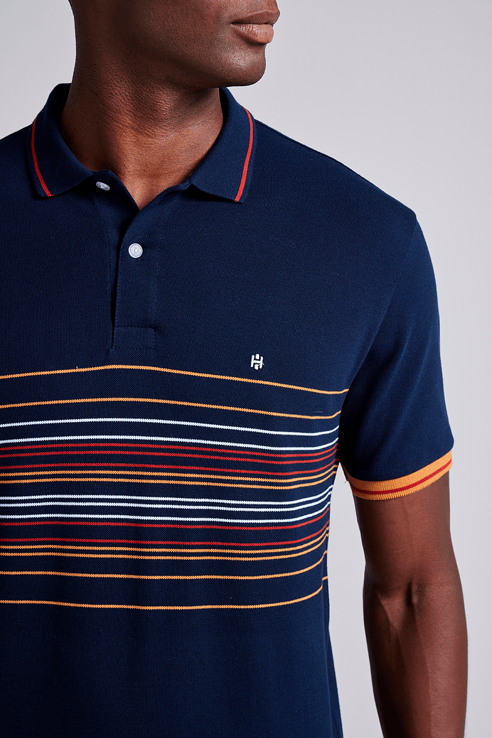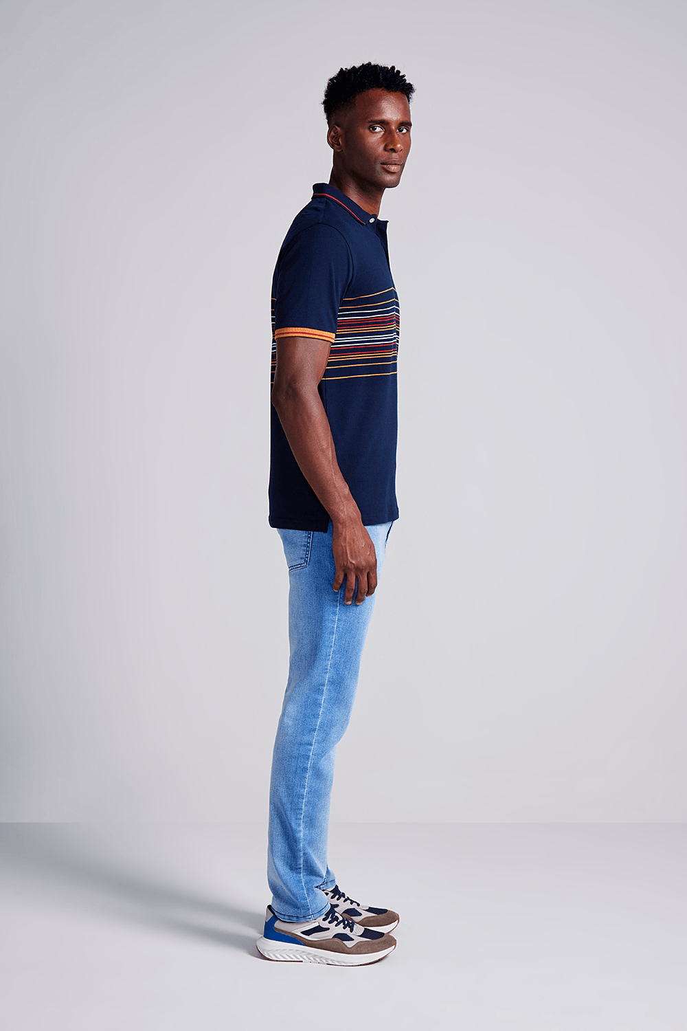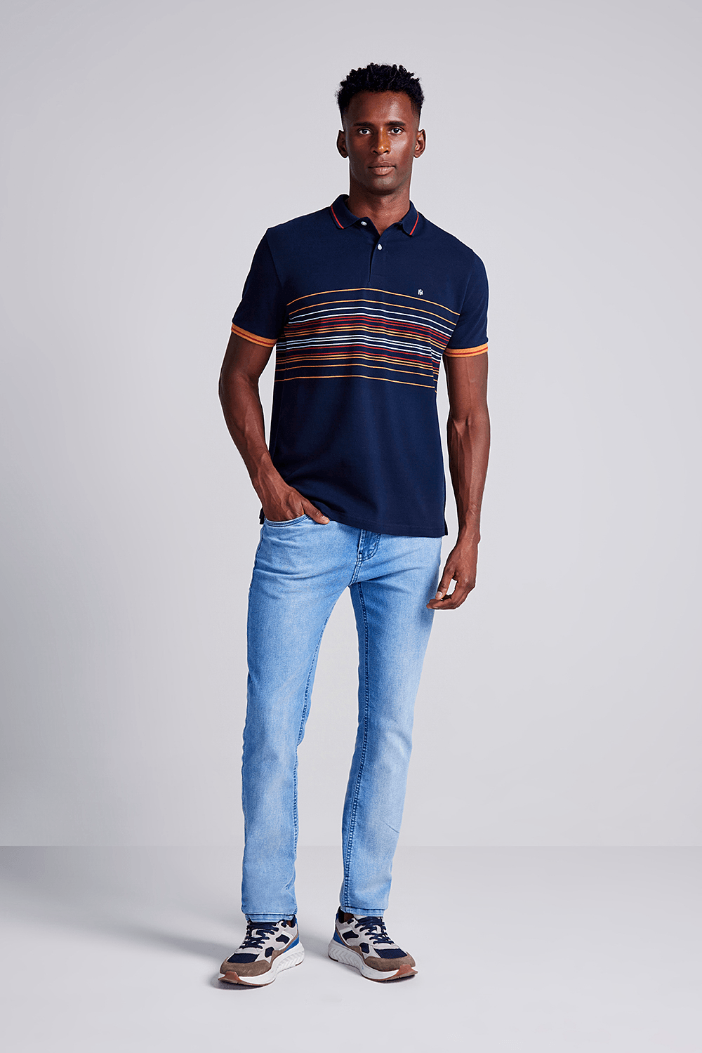 Camisa Polo Piquet Comfort - Azul Marinho / Marrom Caramelo