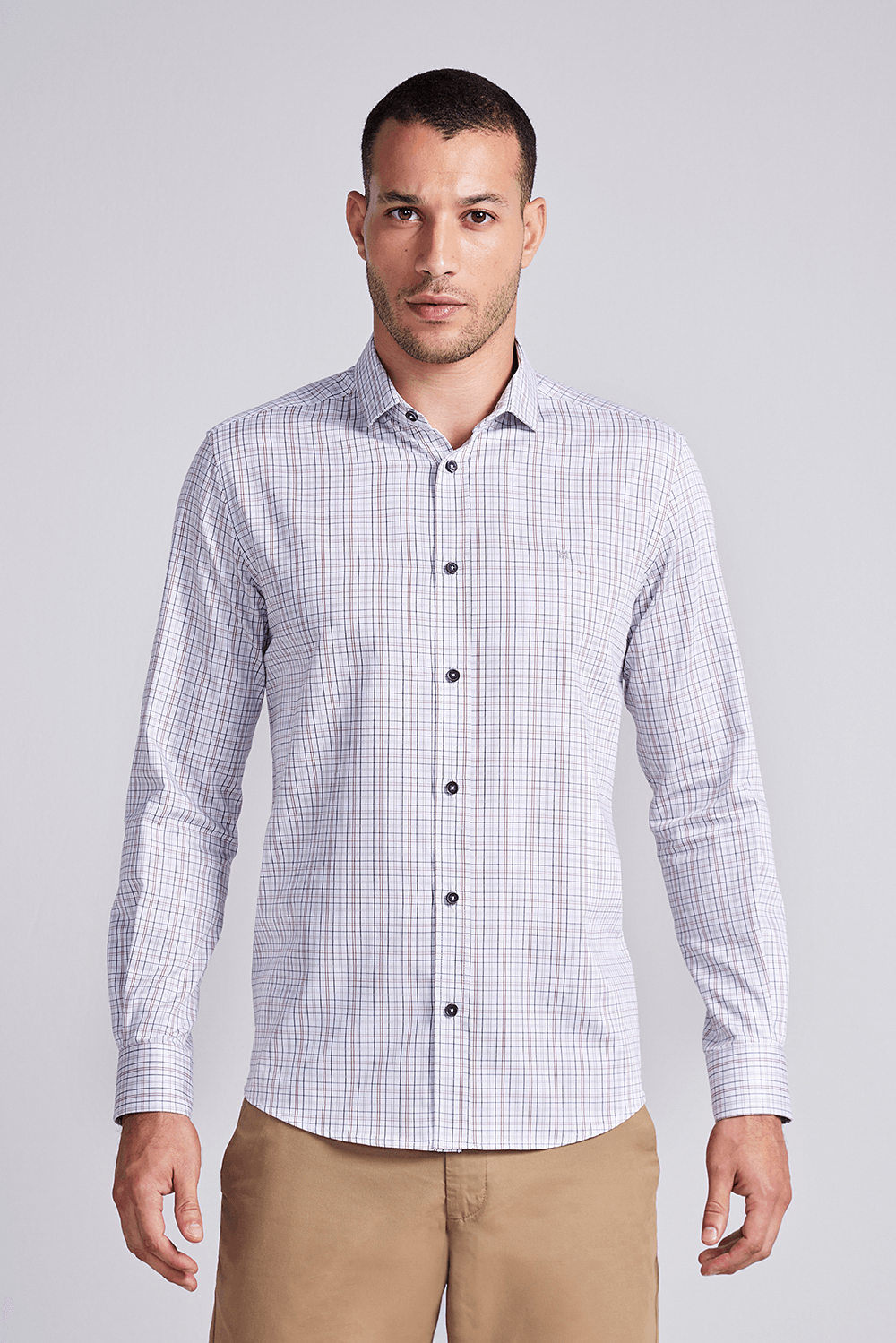 A Camisa Slim Fit é confeccionada em 100% Algodão. A peça conta com colarinho Milano. É confeccionada em tecido Jacquard, a trama resulta em um desenho na malha, possibilitando a criação de inúmeras padronagens.