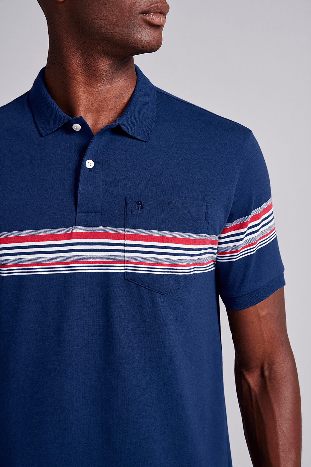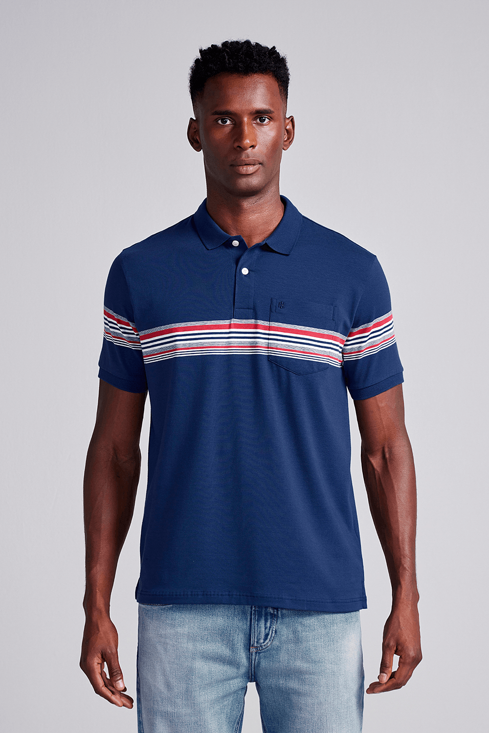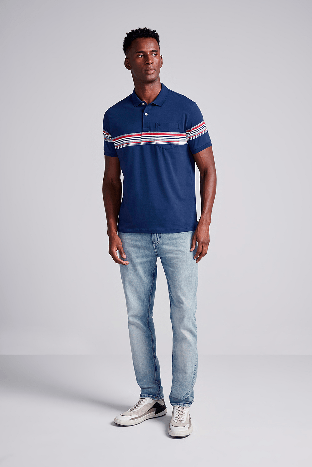 Camisa Polo com Bolso Malha Comfort - Azul Medio