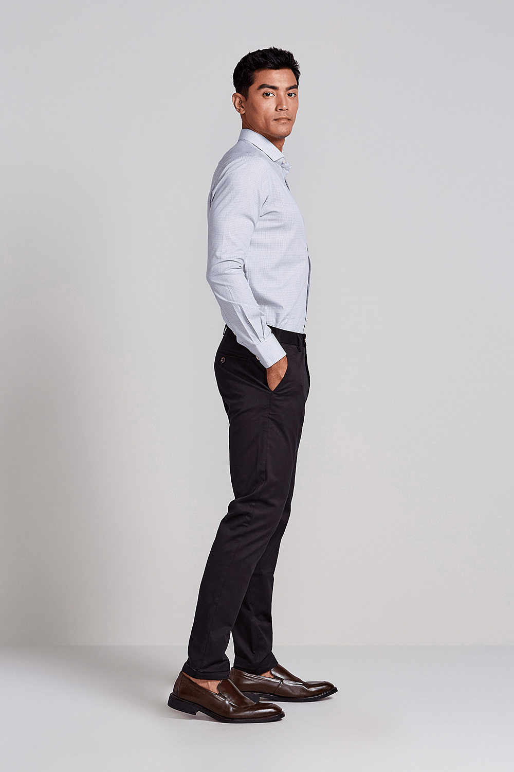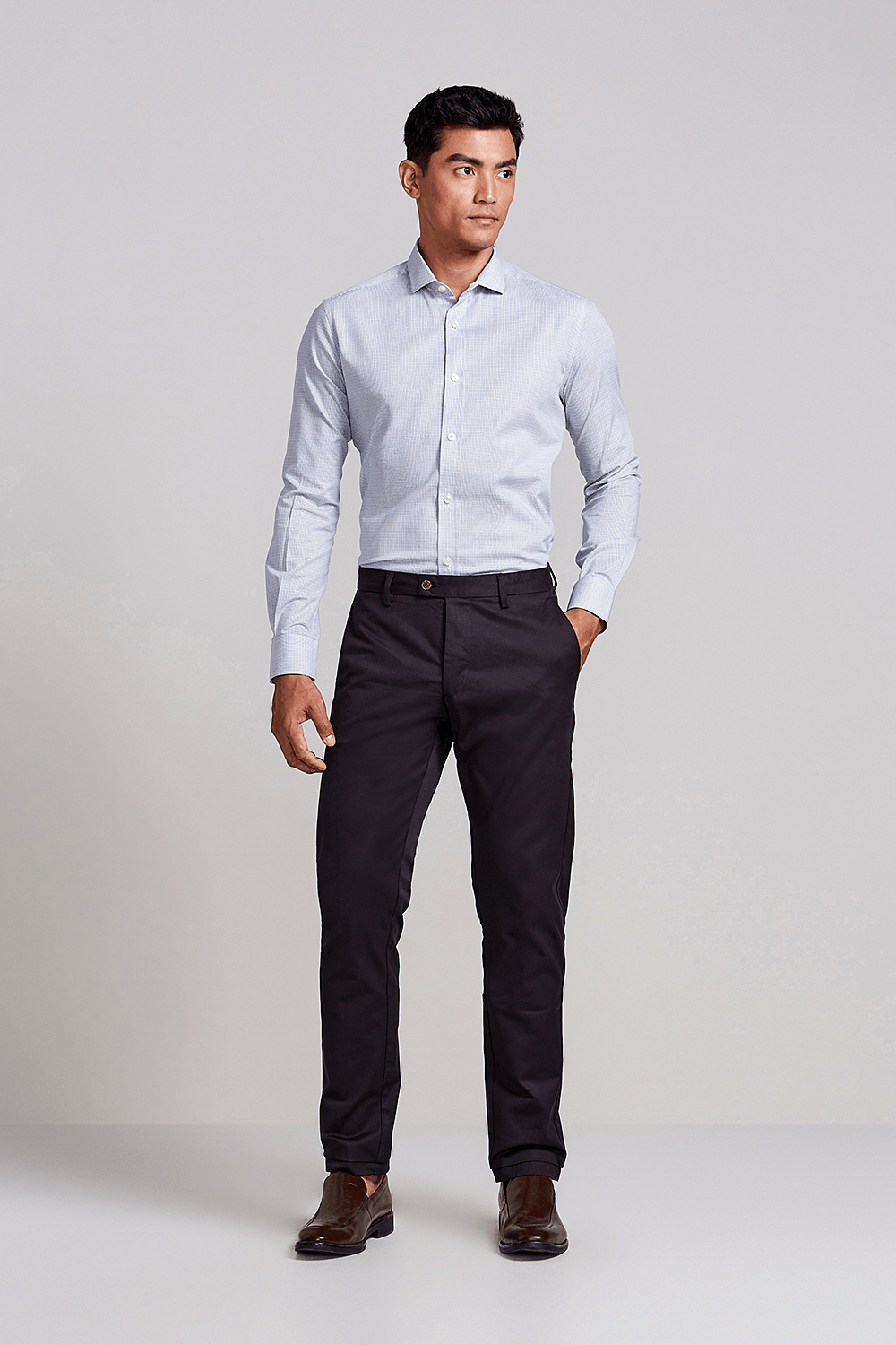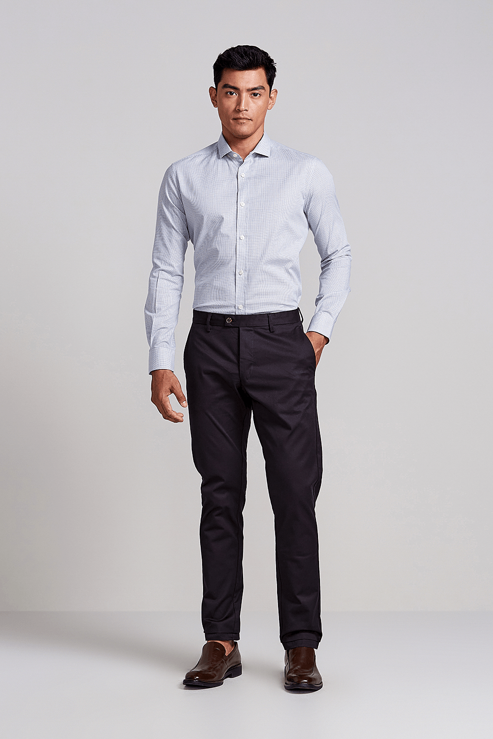 As camisas sociais são ótimas opções para ambientes de trabalho por ajudarem a criar uma aparência mais polida e sofisticada, transmitindo confiança e profissionalismo. Opte sempre por camisas de cores sólidas ou com padrões sutis, que estejam bem ajustadas ao corpo. Certifique-se de que a camisa esteja bem passada e ajustada ao corpo. Você pode também usar uma gravata para um toque formal adicional.