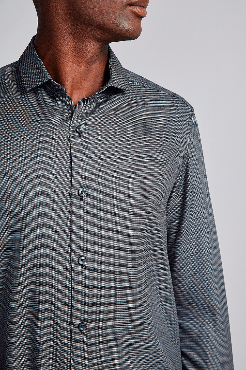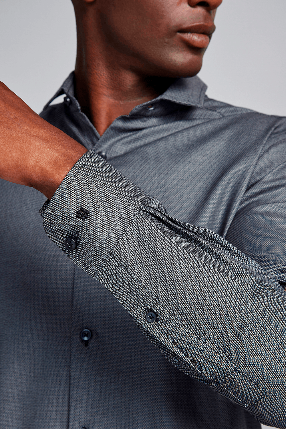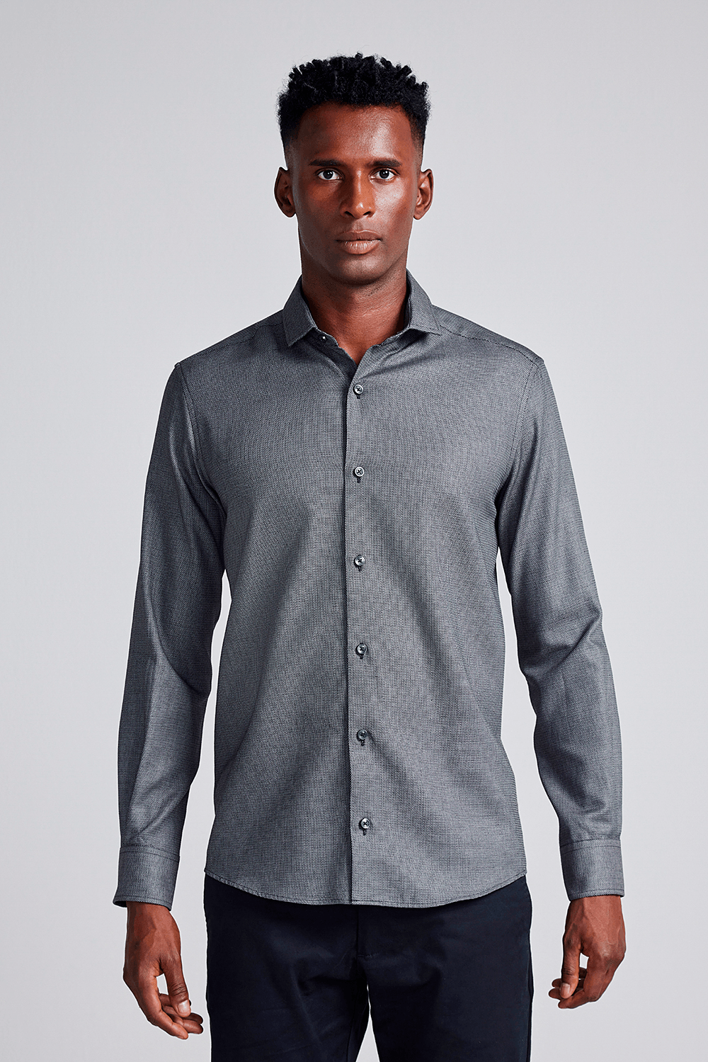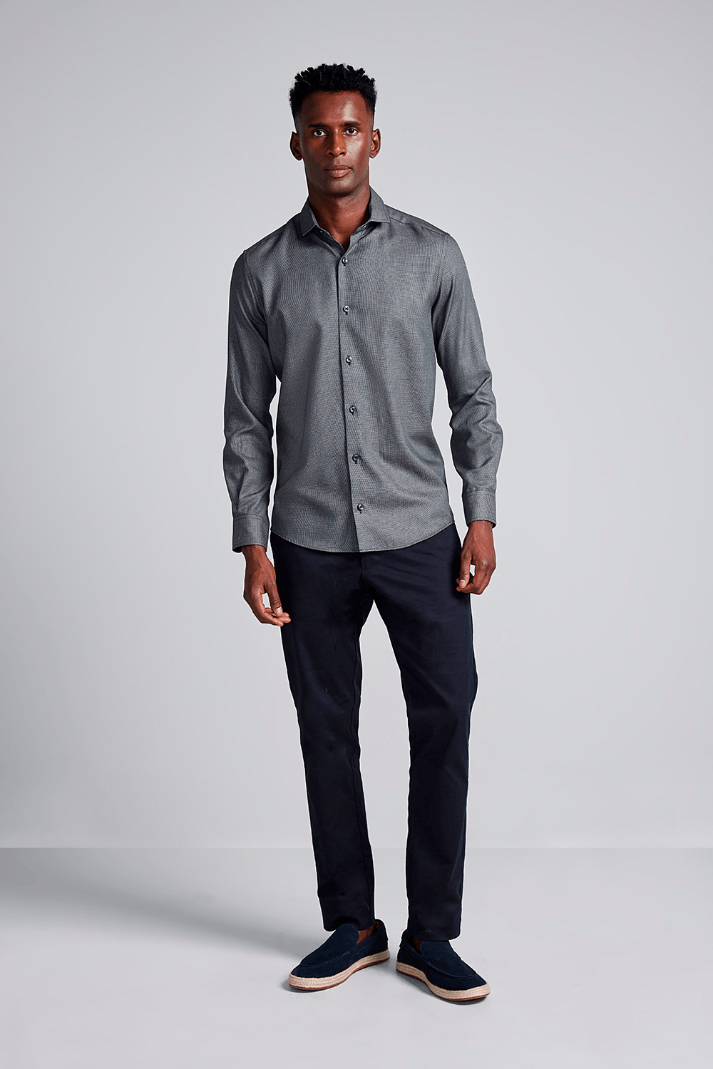 A Camisa Slim Fit é confeccionada em 100% Algodão. A peça conta com colarinho Paris. O tecido de tricoline é um tecido leve, suave e resistente.