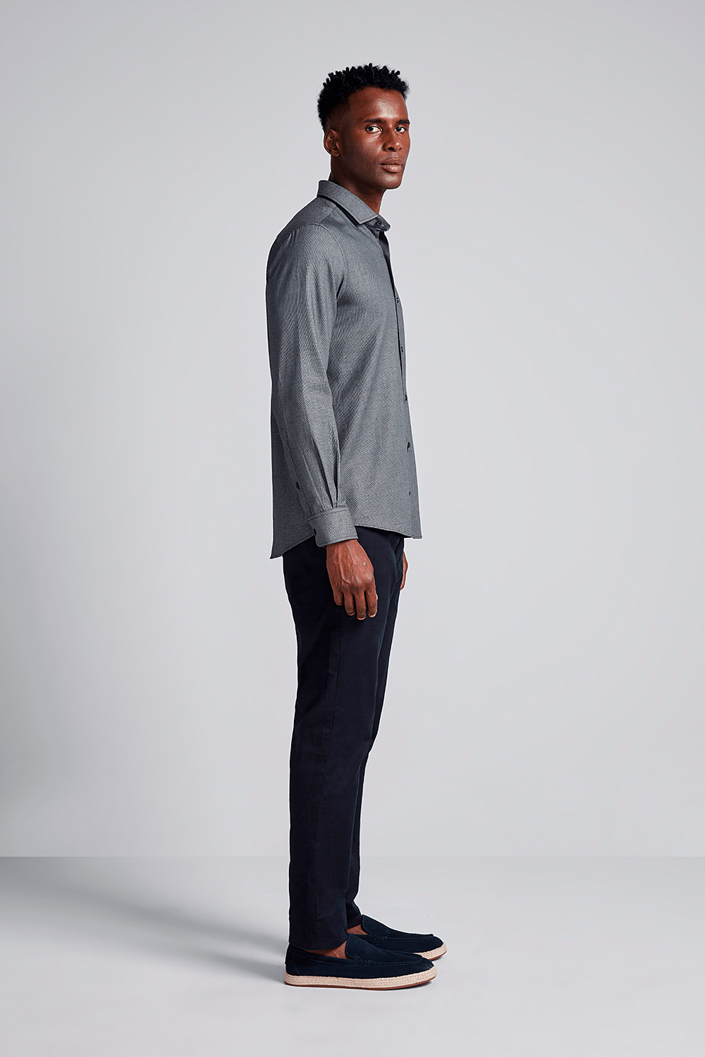 O produto é confeccionada com modelagem Slim Fit, conta com a forma mais ajustada ao corpo, resultando em uma peça sem sobra de tecidos, ideal para quem busca um visual mais alinhado.