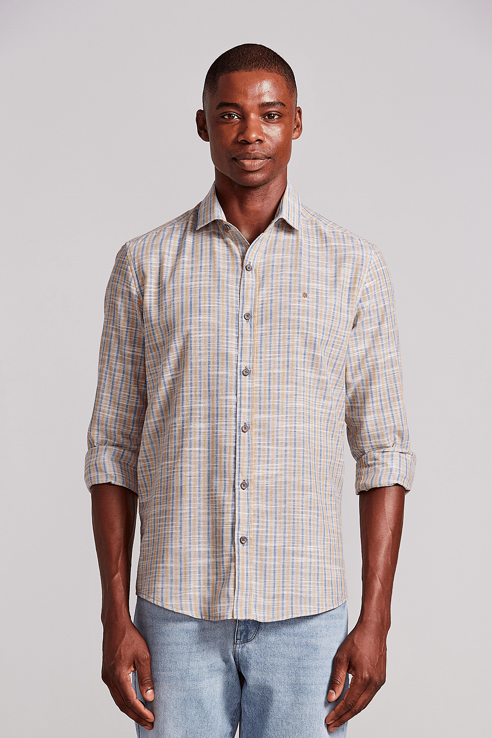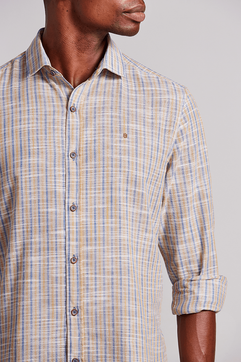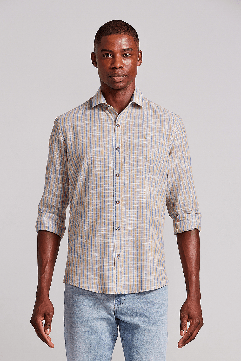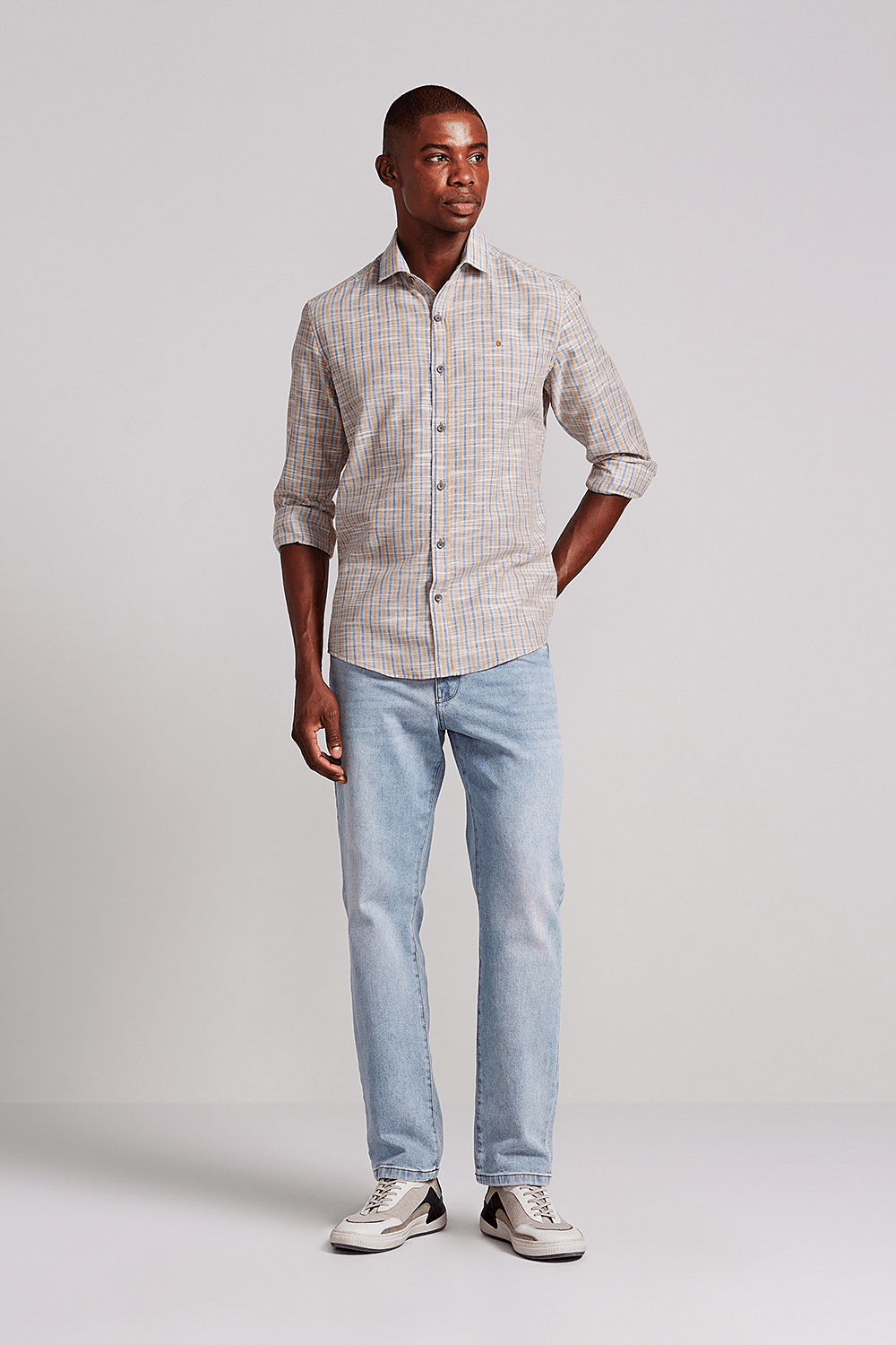 A Camisa Slim Fit é confeccionada em 100% Algodão. A peça conta com colarinho Londres. O tecido de tricoline é um tecido leve, suave e resistente.
