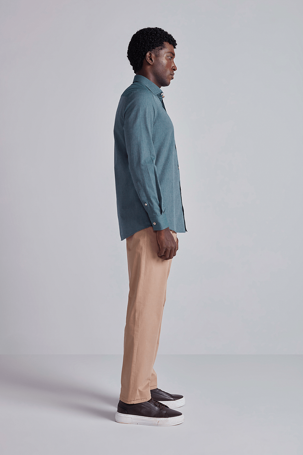Busca por um look completo? Combine com calças chino, jeans escuros ou até mesmo calças sociais. Complete o visual com sapatos elegantes e adicione um blazer se desejar um toque mais formal.