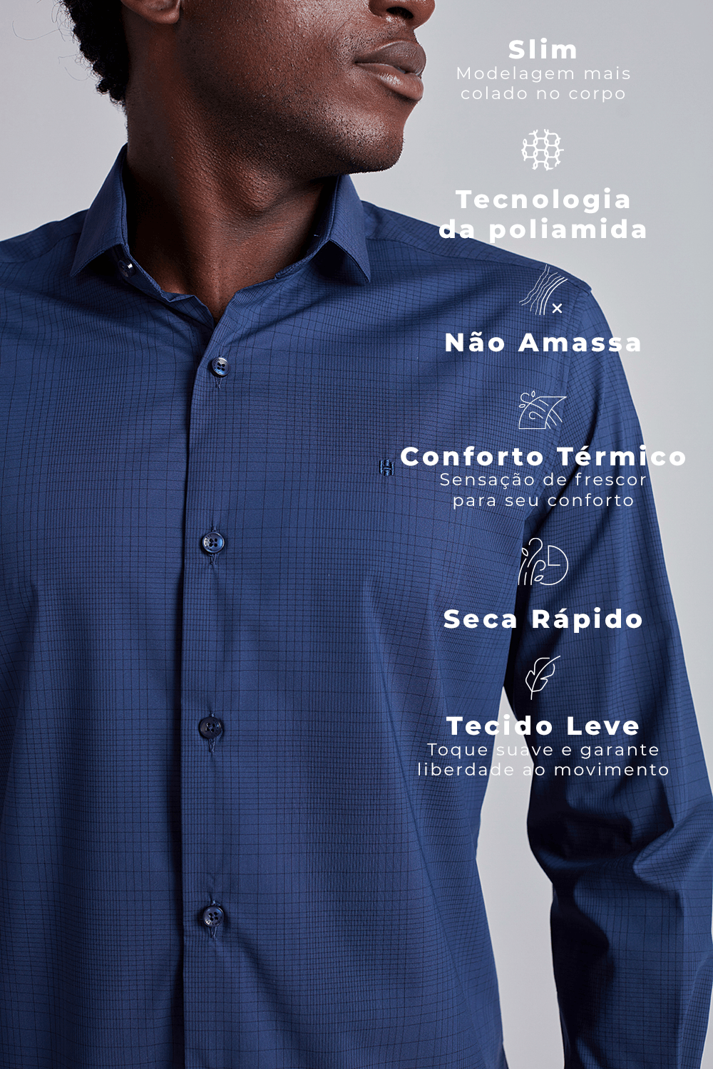 Camisa Tecnocomfy Slim Fit - Azul Marinho