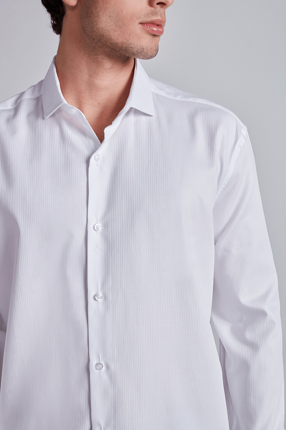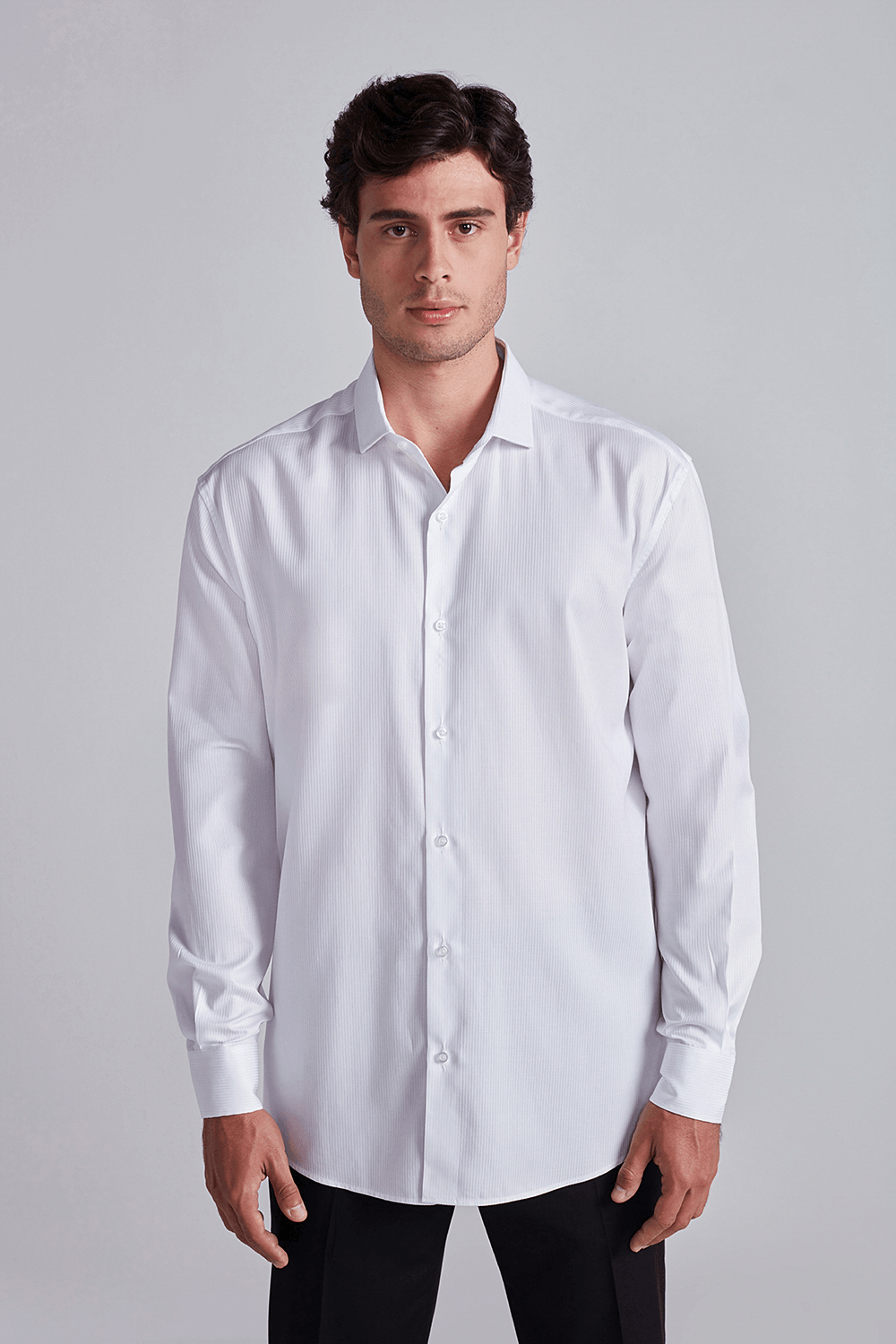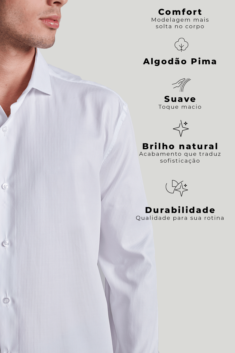 A Camisa Social Algodão Pima Comfort é confeccionada em 100% Algodão Pima, oferecendo uma suavidade incomparável, brilho natural e uma durabilidade excepcional. A peça conta com colarinho Paris.