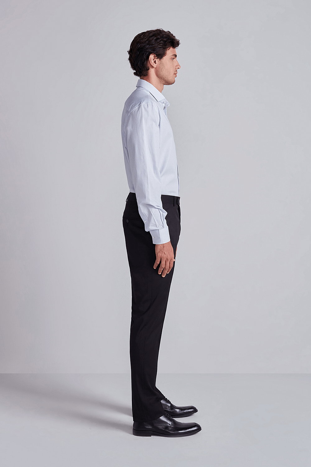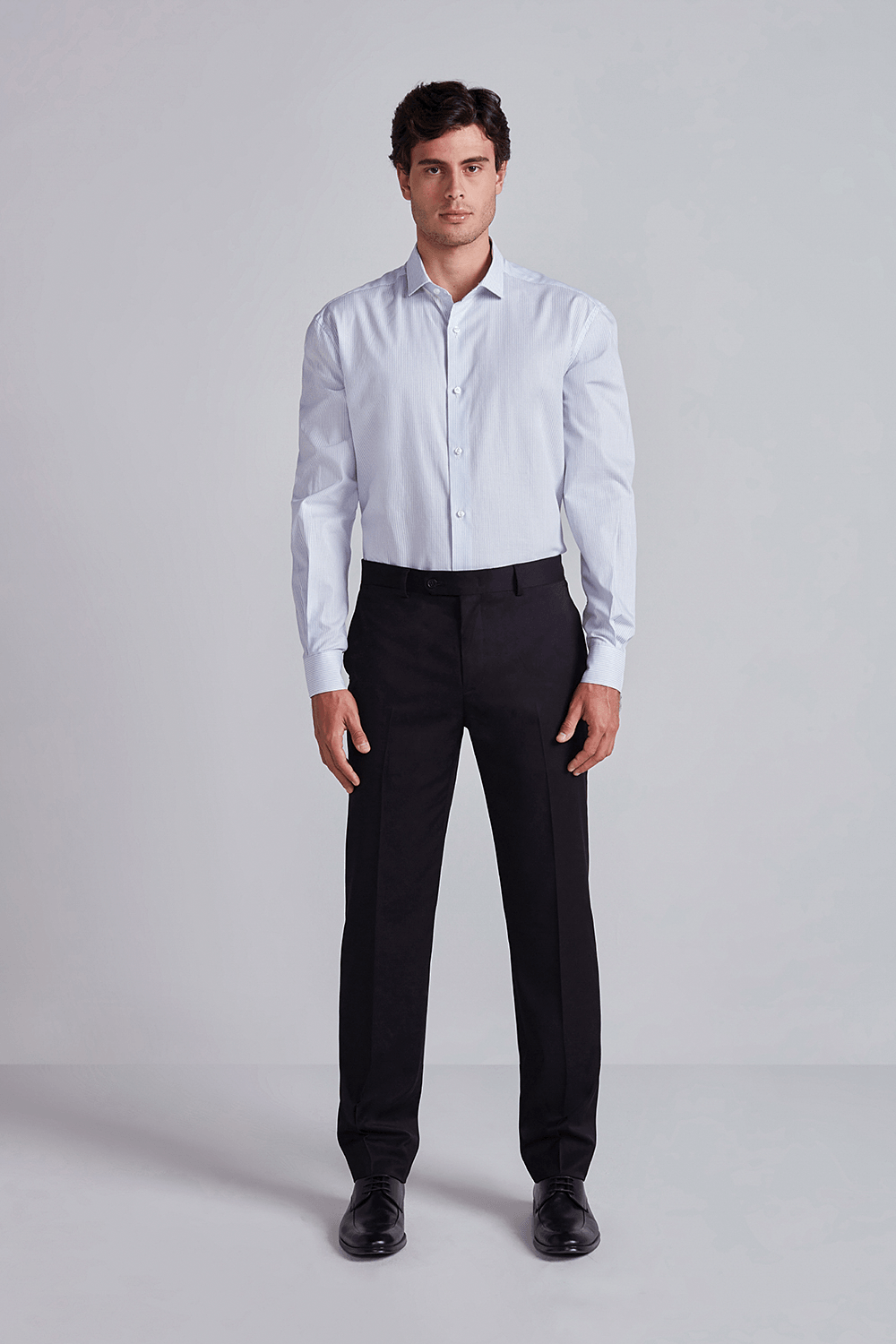 As camisas sociais são ótimas opções para ambientes de trabalho por ajudarem a criar uma aparência mais polida e sofisticada, transmitindo confiança e profissionalismo. Opte sempre por camisas de cores sólidas ou com padrões sutis, que estejam bem ajustadas ao corpo. Certifique-se de que a camisa esteja bem passada e ajustada ao corpo. Você pode também usar uma gravata para um toque formal adicional.