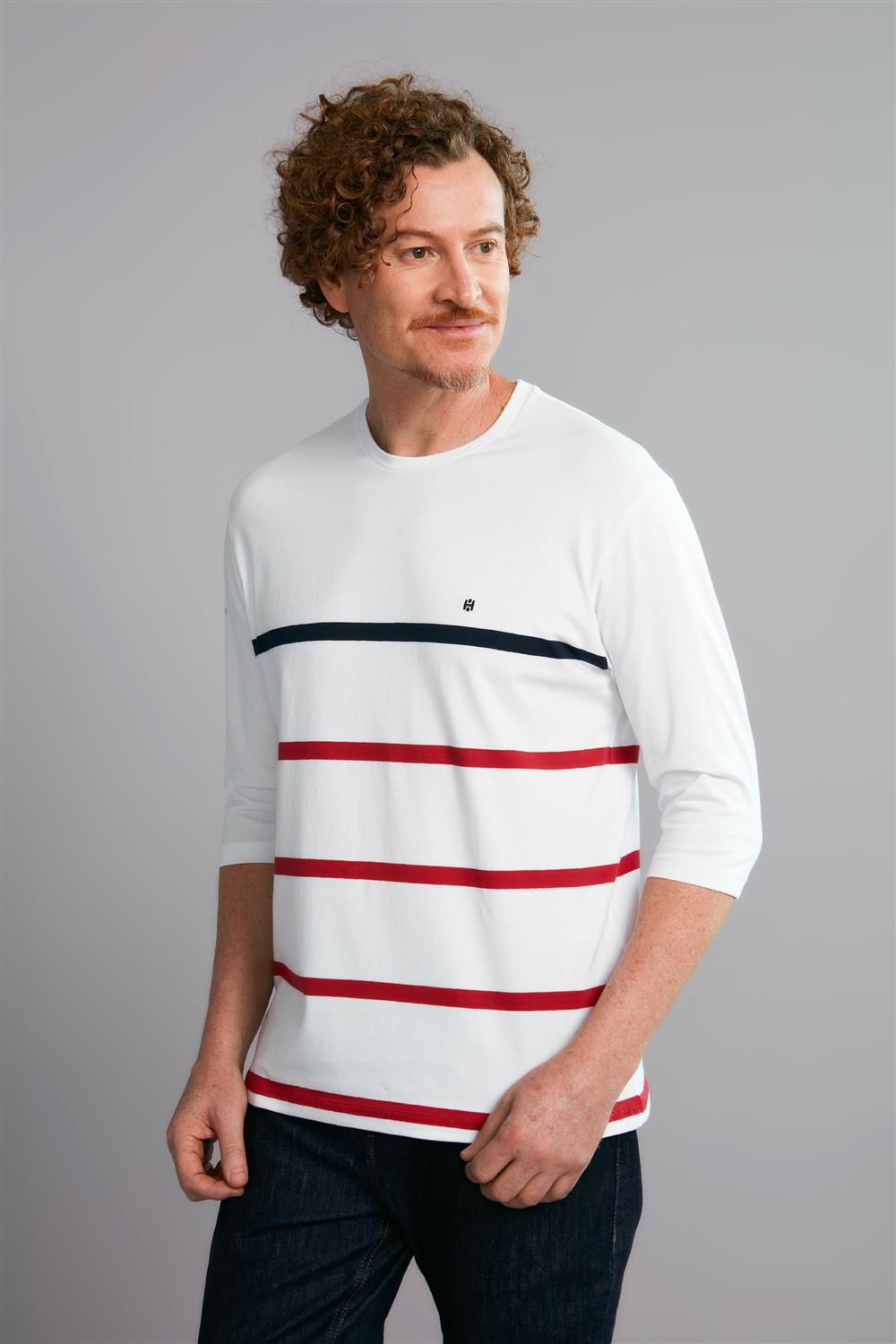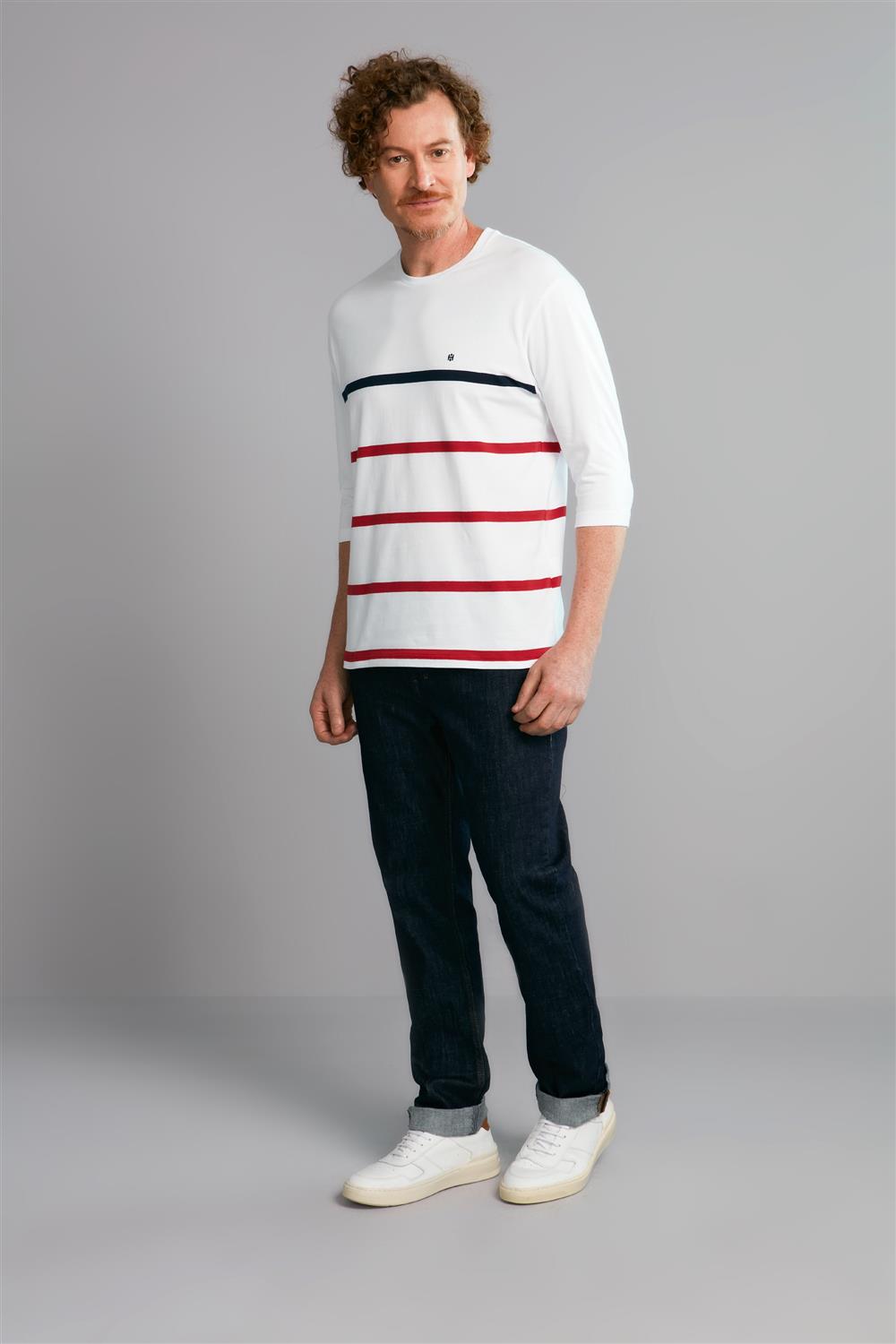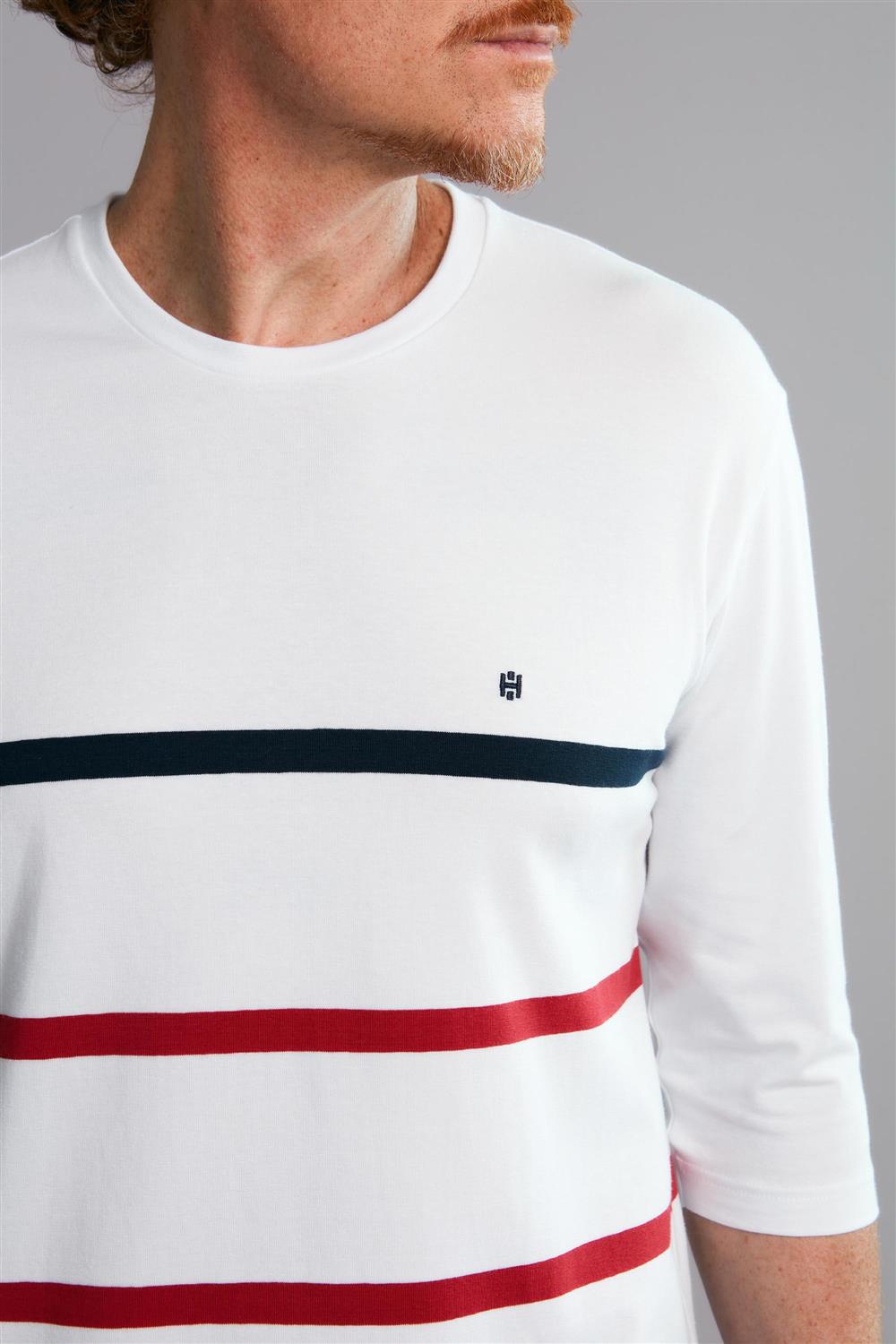 Camiseta Manga 3/4 Malha Comfort - Branco / Vermelho Rubi