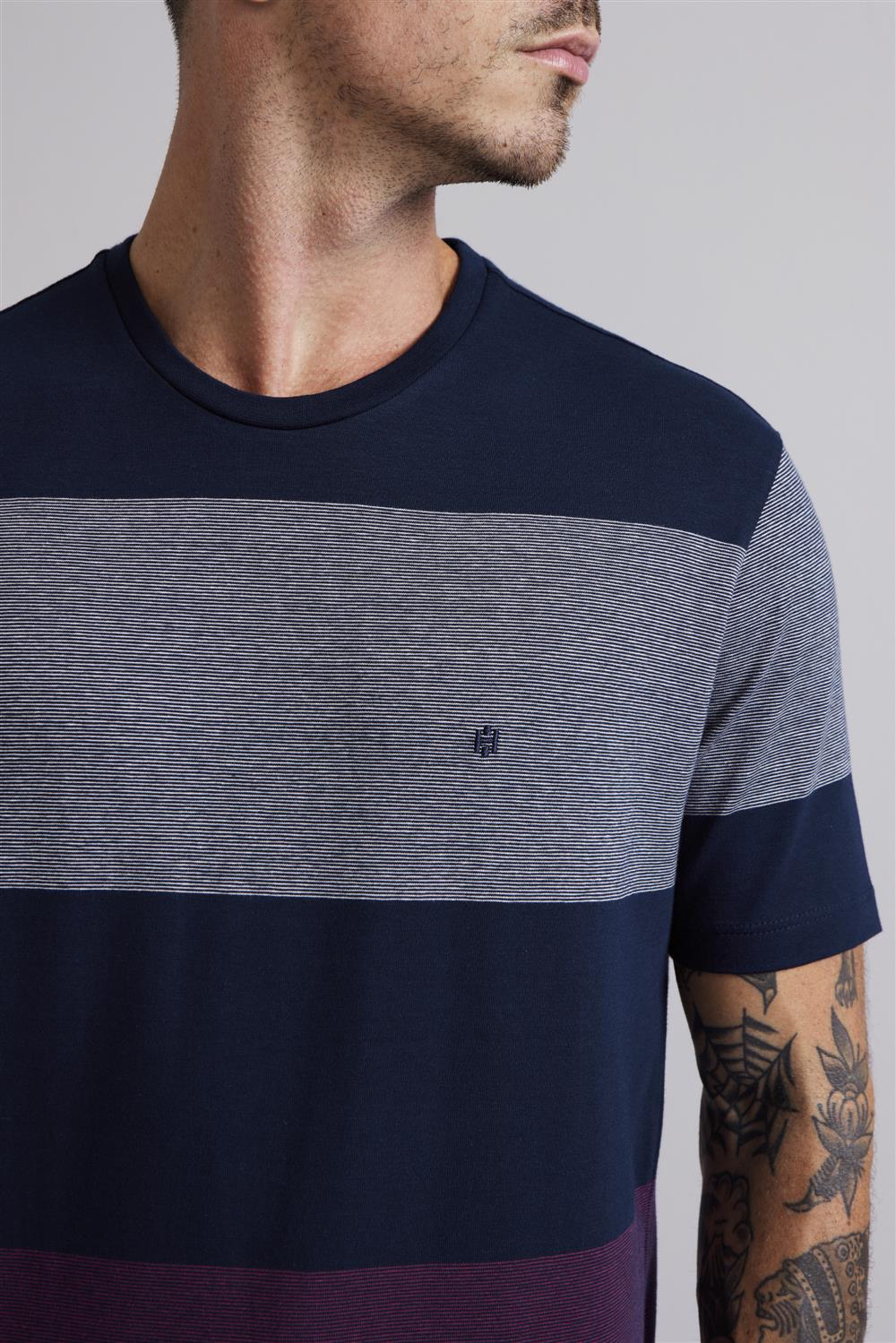 Camiseta Malha Comfort - Azul Marinho / Rosa