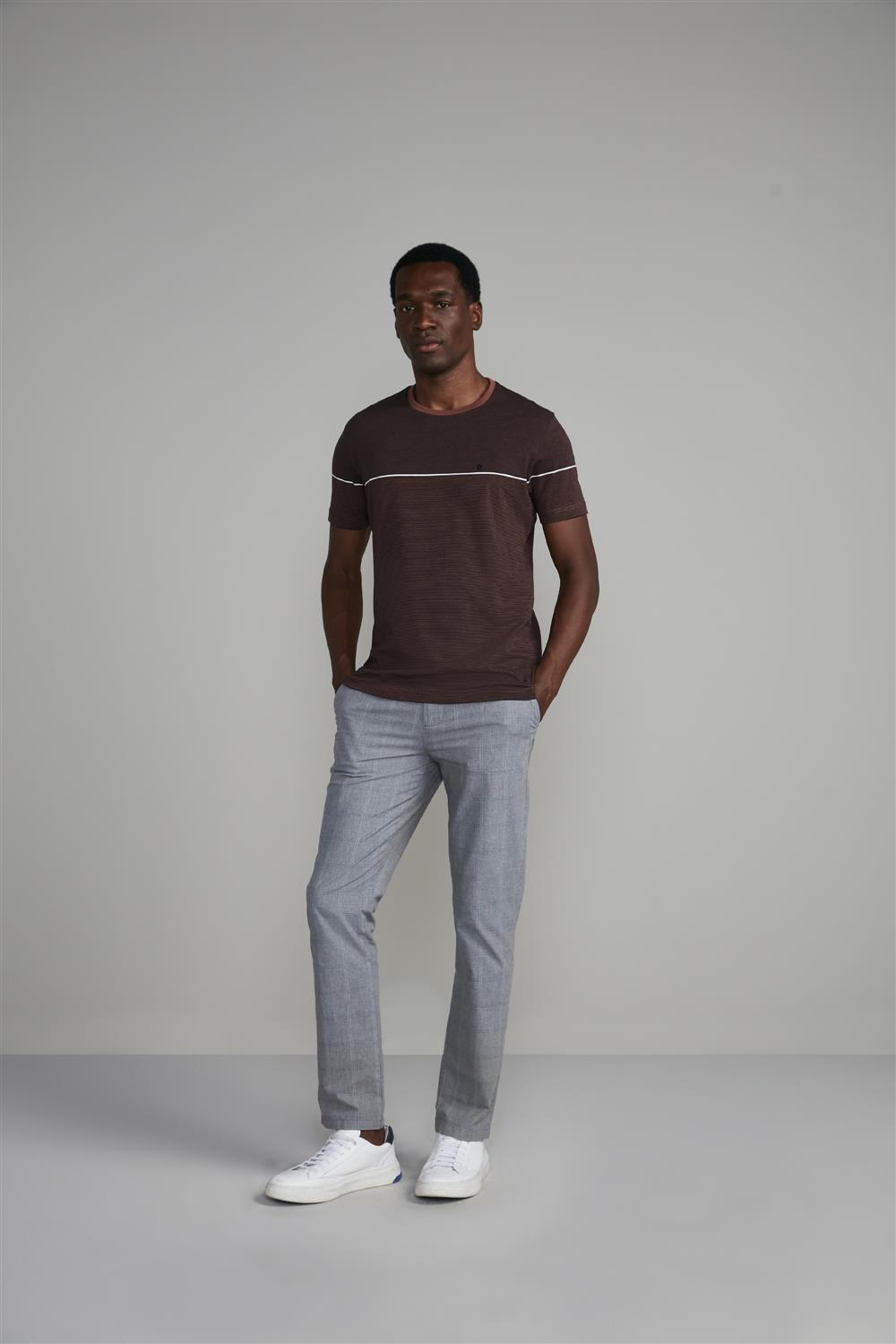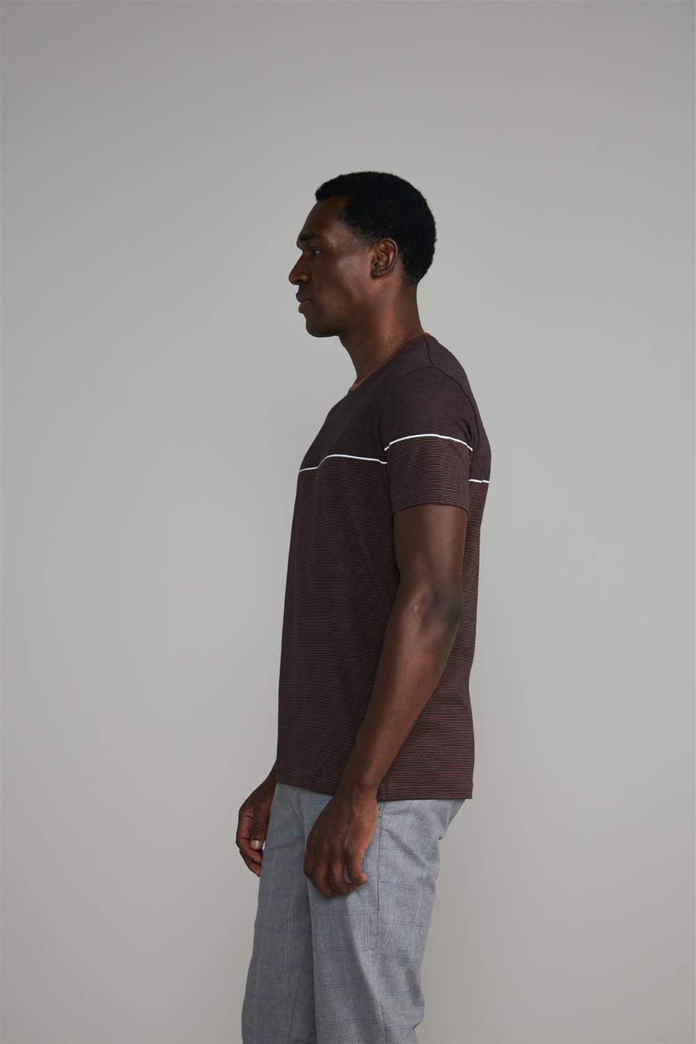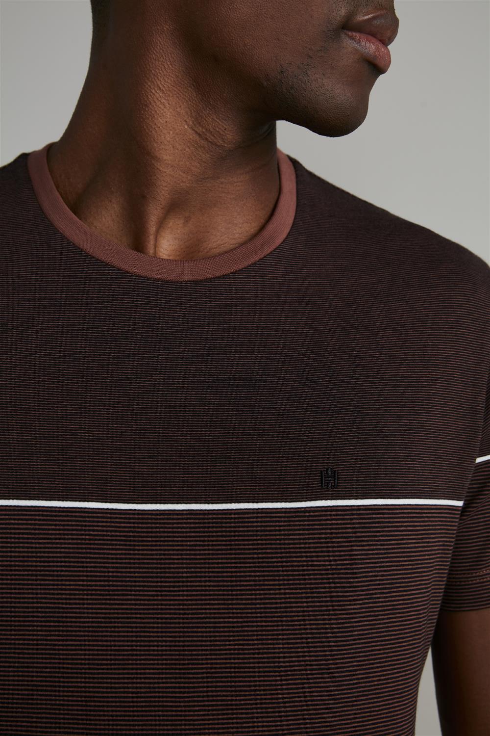 Camiseta Malha Slim Fit - Preto / Marrom Castanho