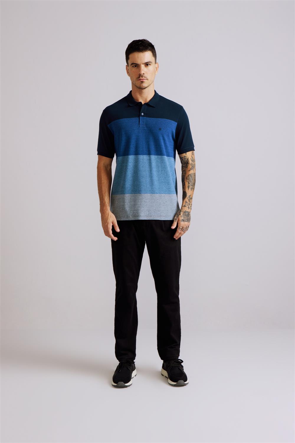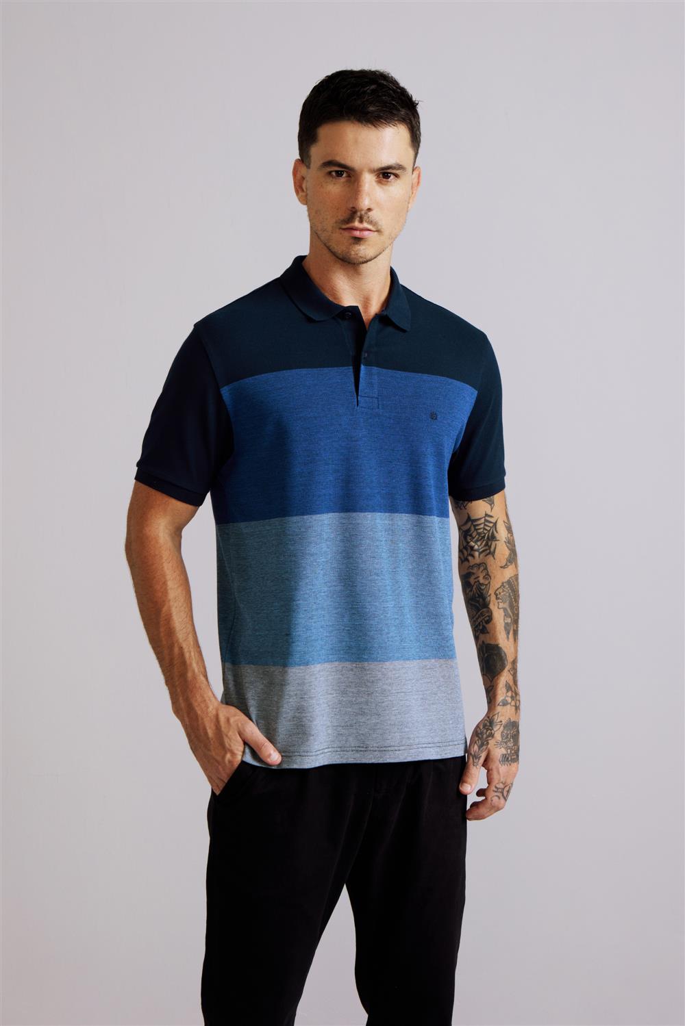 Camisa Polo Piquet Comfort - Azul Marinho / Azul Hidra