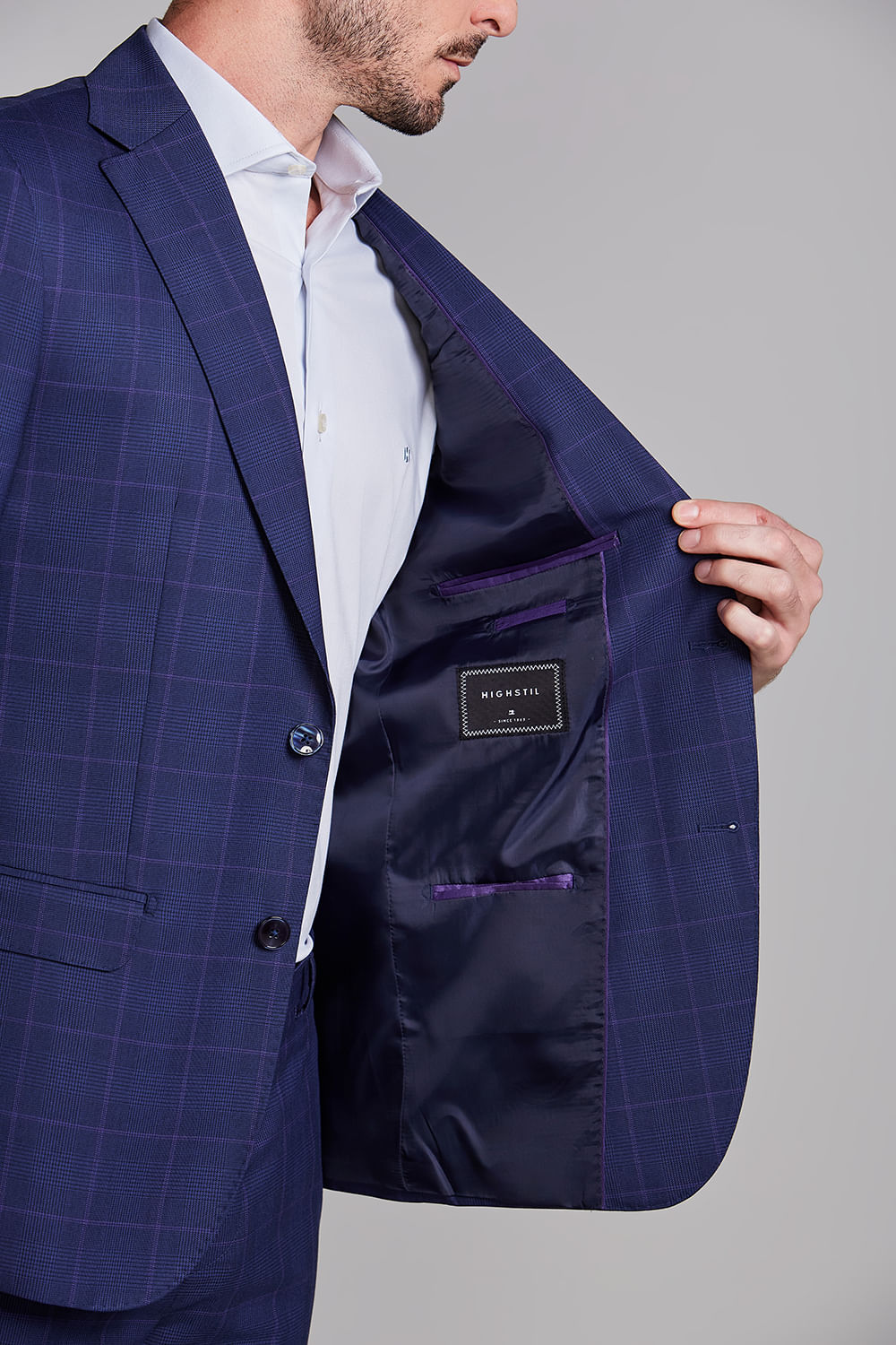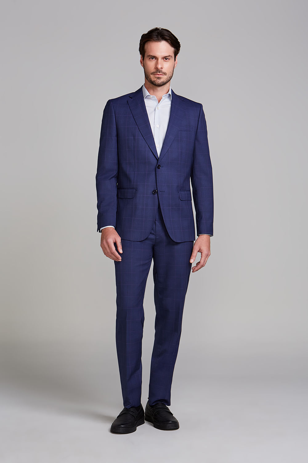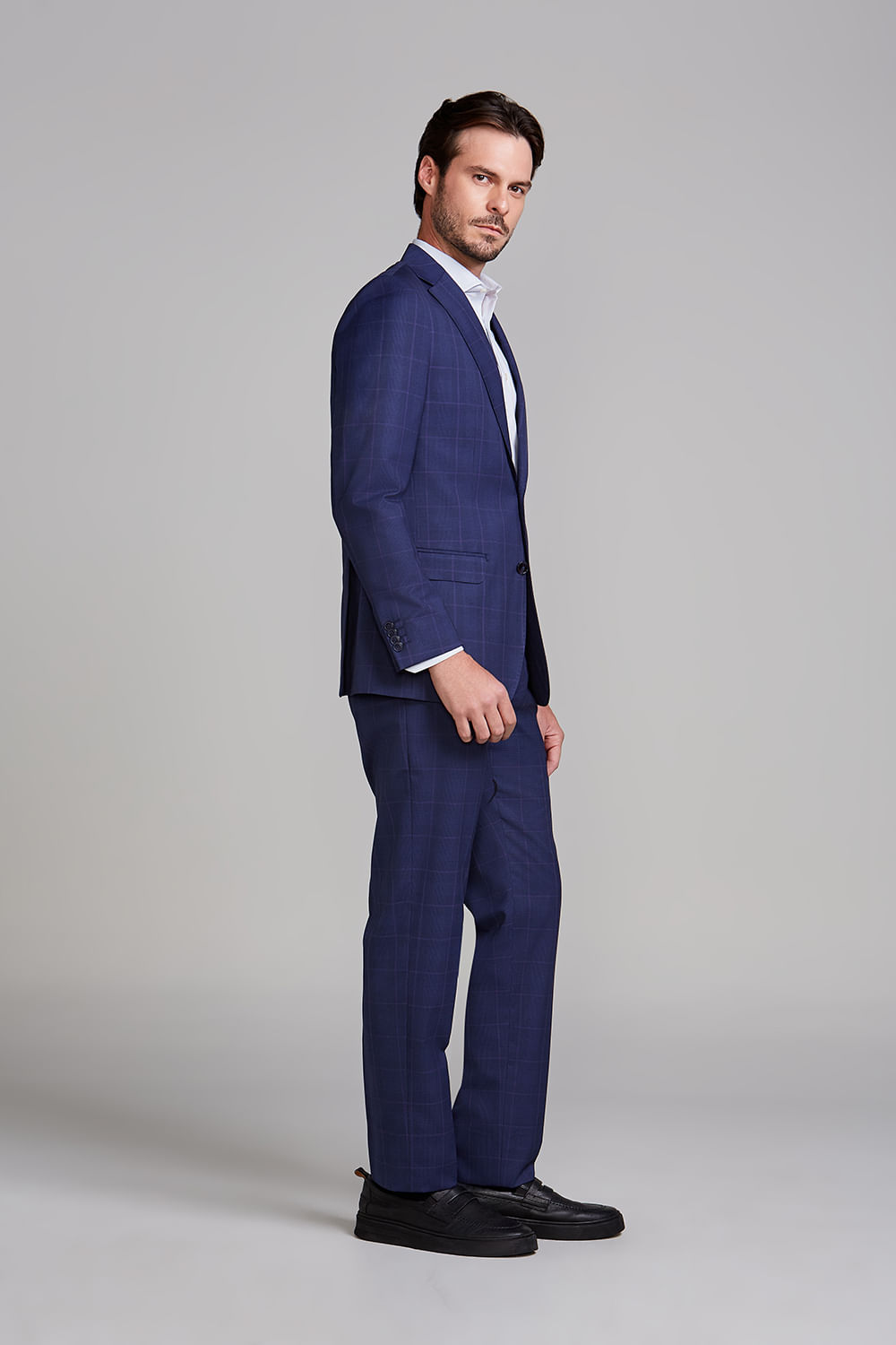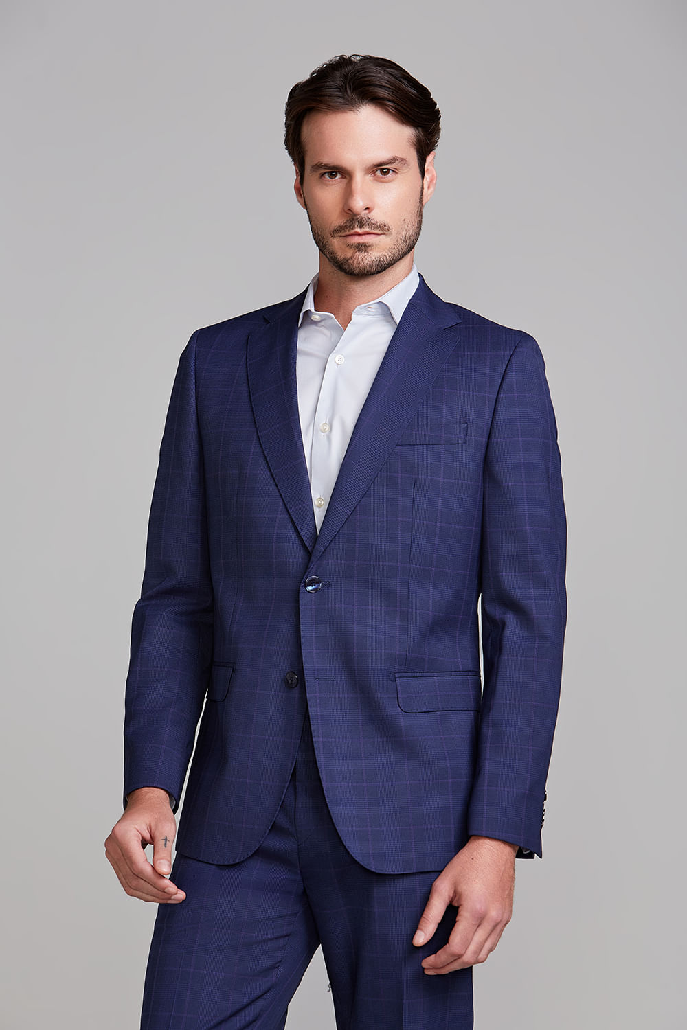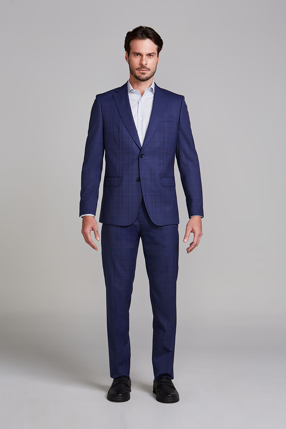 O costume de dois botões é uma escolha clássica que combina elegância e estilo. Este modelo é uma peça versátil que pode ser utilizado em muitas ocasiões, desde o ambiente de trabalho, elevando o nível de sofisticação criando um visual elegante e profissional, até cerimônias que pedem maior requinte na composição, como casamentos e batizados.