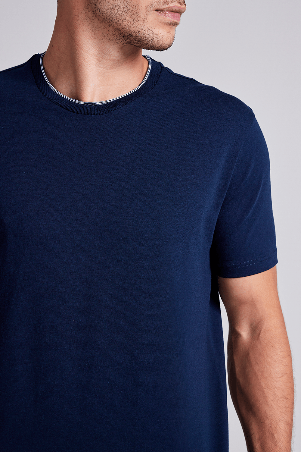 A Camiseta Malha Comfort é confeccionada em 96% Algodão e 4% Elastano, e é confeccionada em Meia Malha, é composta principalmente por Algodão e Elastano, tornando-a extremamente leve e macia. Além disso, possui ótima elasticidade, fazendo com que a peça tenha bom caimento ao corpo. Com um detalhe especial na gola, a peça ganha um charme único.