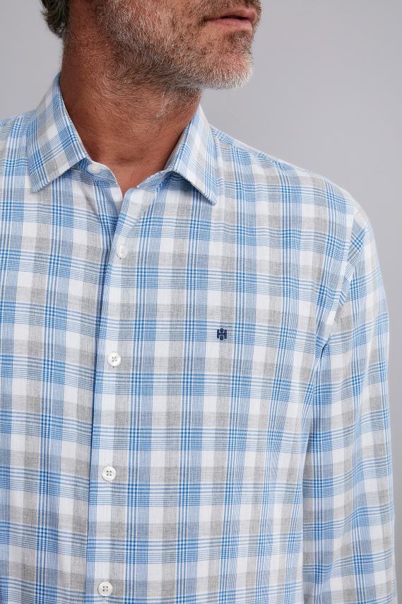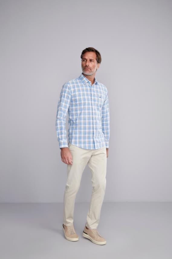 Camisa Manga Longa Xadrez Slim Fit - Azul