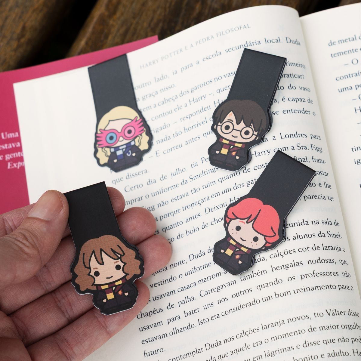 Ideal para você marcar páginas de livros, cadernos e agendas, e nunca se perder durante as suas leituras e anotações, nosso Kit Marcadores De Livro HP Personagens chegou trazendo criatividade para a sua rotina como num passe de mágica!