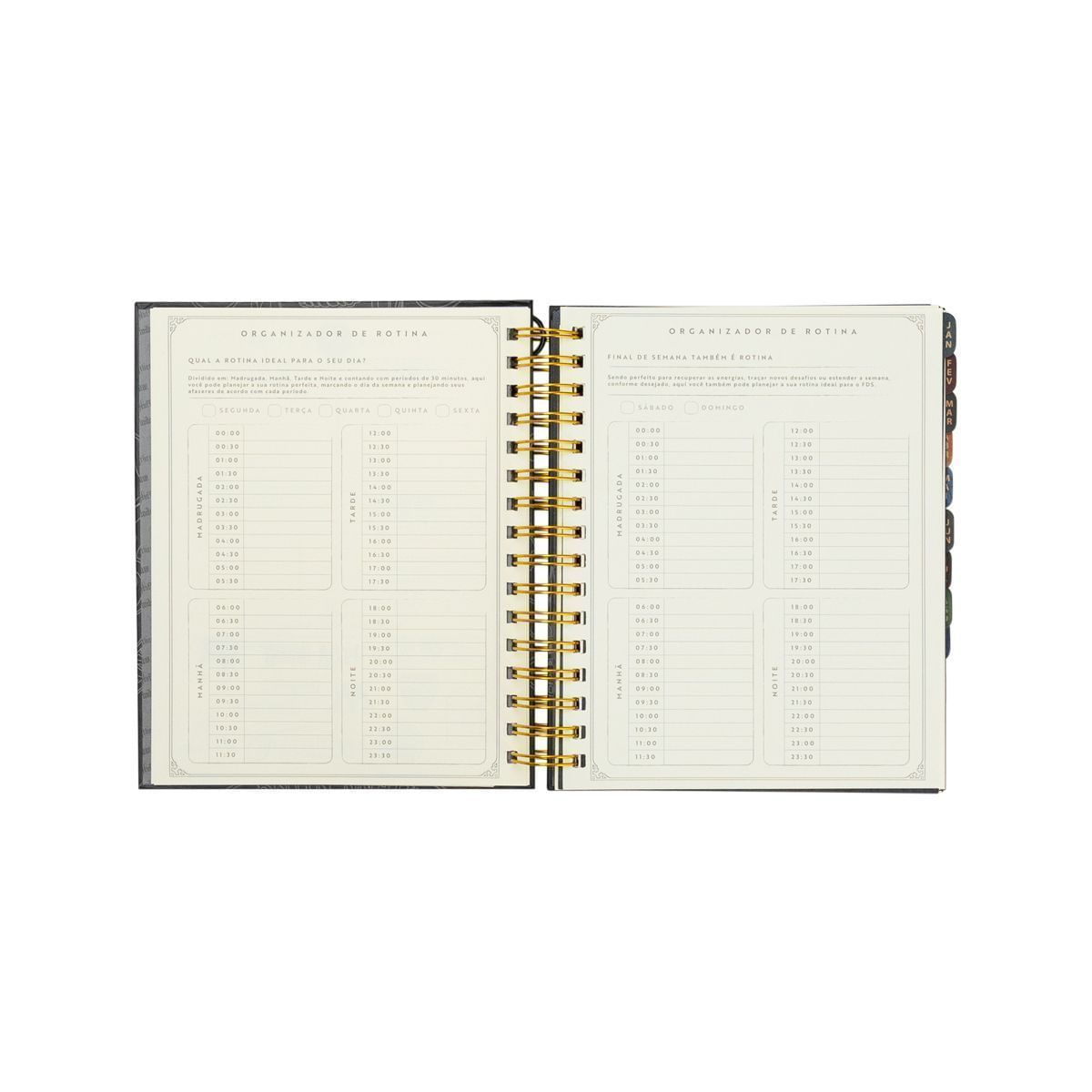 Super presenteável e perfeito para você agilizar o seu dia a dia, ele foi todo pensado para te ajudar a planejar seus próximos passos, organizar seus compromissos e tomar nota de tudo o que importa, sejam suas metas, seus gastos mensais, seus hábitos e seu tempo livre para descanso e lazer.