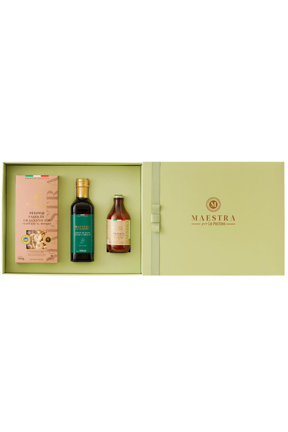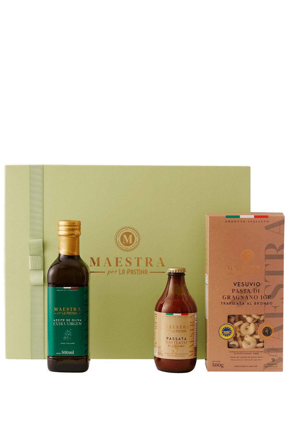 Com raízes fincadas na tradição napolitana, o Kit Classici Gragnano reúne ingredientes que traduzem a essência da culinária italiana. A Massa Vesuvio di Gragnano IGP, feita com trigo 100% italiano e moldada em bronze, apresenta textura firme e porosa, perfeita para absorver molhos ricos. A Passata Datterini di Collina, produzida com tomates colhidos nas colinas do sul da Itália, oferece sabor doce e aroma intenso, sem adição de conservantes. O Azeite Extravirgem 100% Italiano, prensado a frio, oferece frescor vibrante e notas intensas que realçam qualquer preparo.