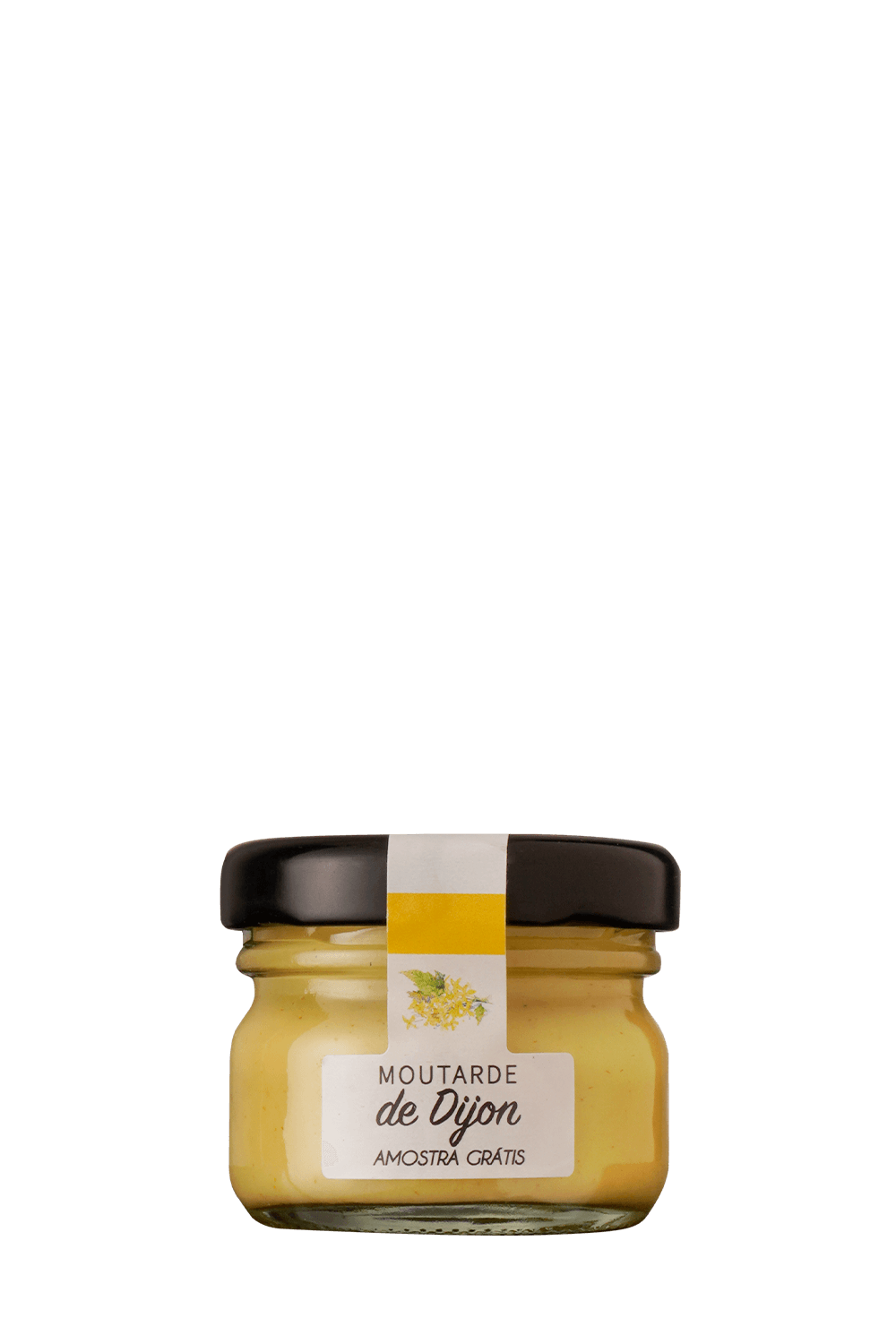 autêntica receita de Mostarda Dijon, composta por grãos de mostarda preta, vinagre, sal e