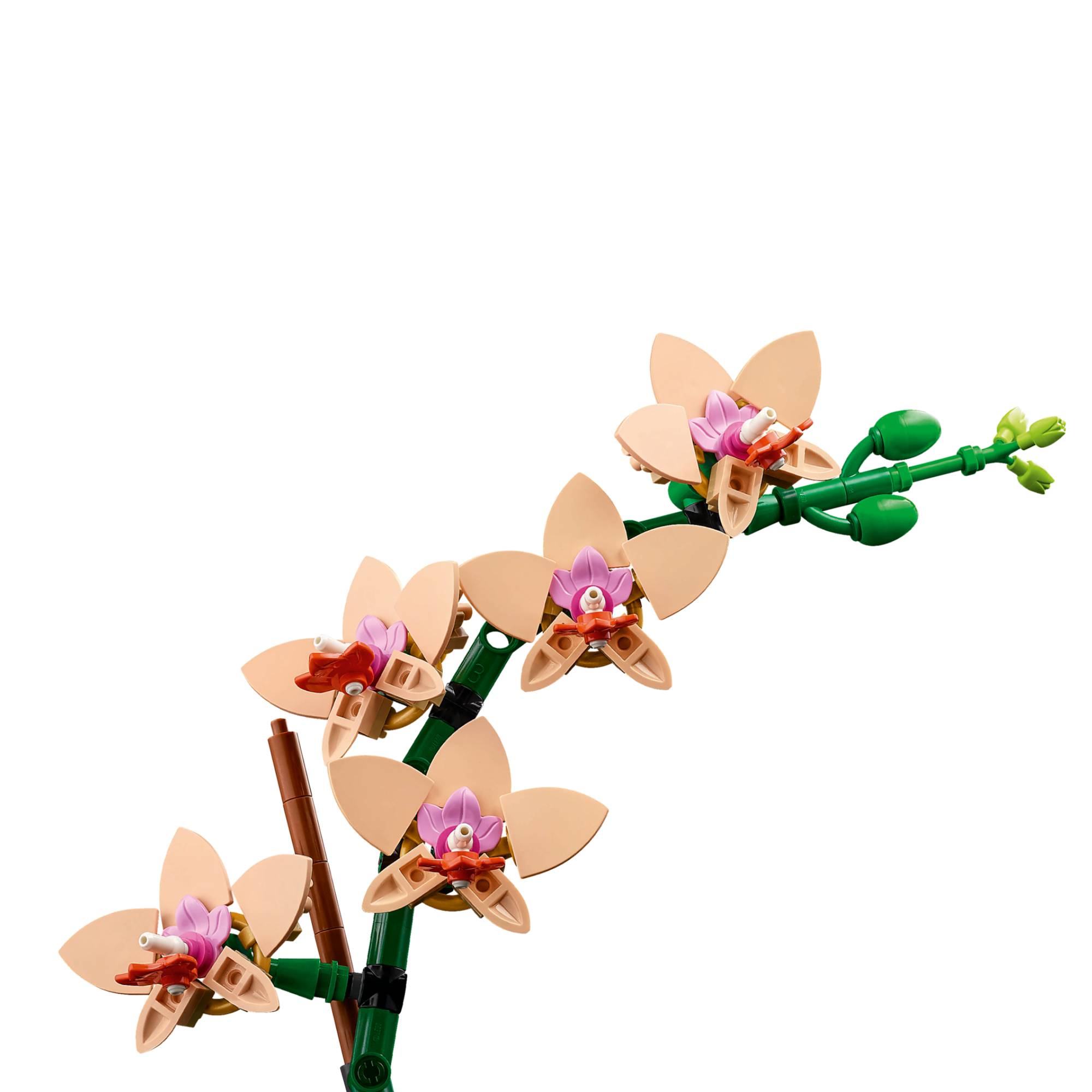 A réplica realista apresenta 5 flores de orquídea em flor e algumas em botão, bem como folhas para autenticidade extra. Ela também vem com um vaso de flores de terracota leve que fica em um lindo pedestal com efeito de madeira, tornando fácil para floristas iniciantes exibirem a flor LEGO orgulhosamente como uma bela decoração para casa ou escritório para trazer a tranquilidade da natureza para qualquer espaço de vida ou trabalho.