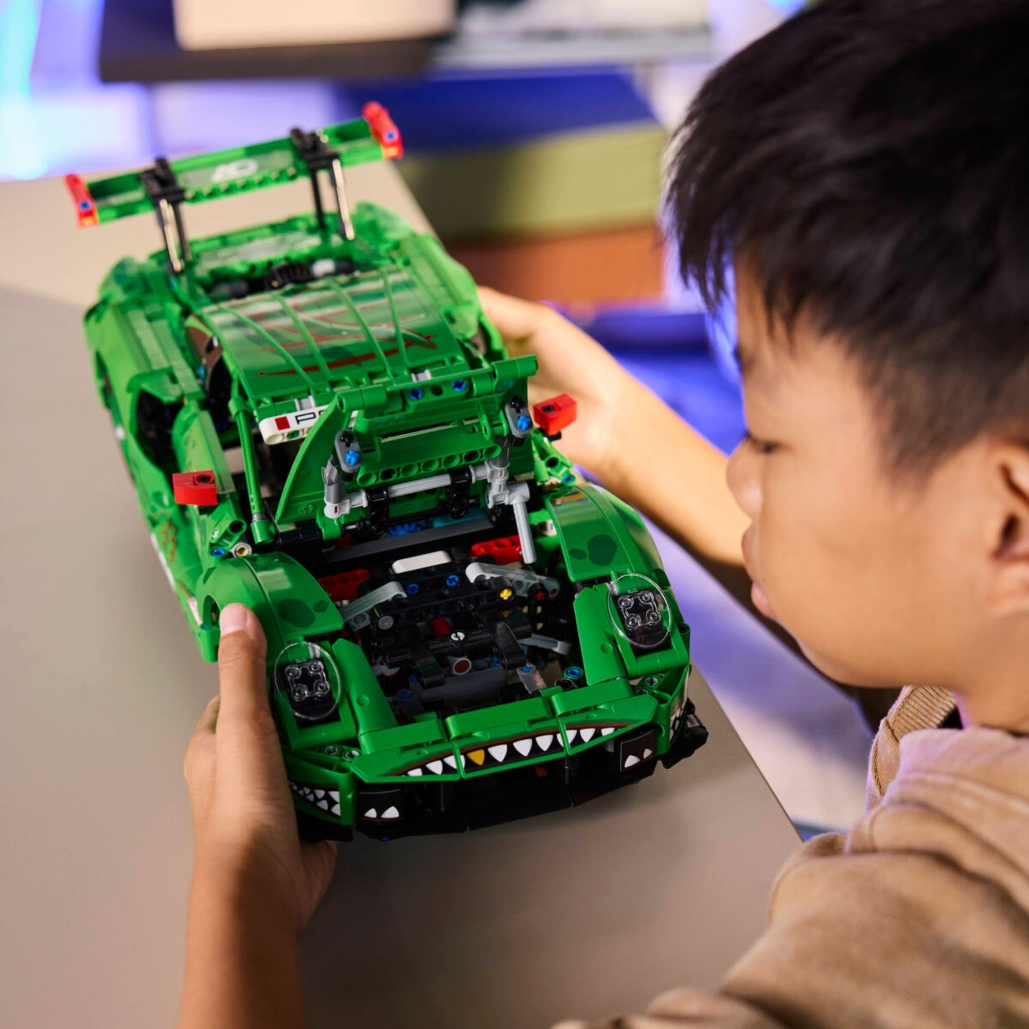 Prepare-se para brincadeiras épicas com este carro de corrida de resistência com tema de dinossauro, perfeito para crianças a partir de 11 anos. Repleto de detalhes incríveis, o LEGO® Technic™ Porsche 911 GT3 R REXY AO Racing Car (42224) é ideal para meninos e meninas que adoram brincadeiras cheias de ação. As crianças podem assumir o controle usando o botão de direção na parte superior e conferir a suspensão funcional nas 4 rodas, a tração traseira com diferencial, o motor boxer de 6 cilindros com a ordem de ignição correta, as portas e o porta-malas que abrem e os macacos pneumáticos sincronizados. E com sua pintura feroz inspirada no Tiranossauro Rex, este modelo fica tão impressionante em exposição quanto na pista de corrida. Este conjunto é um presente divertido para fãs de dinossauros e entusiastas de carros. Os conjuntos LEGO Technic apresentam movimentos e mecanismos realistas que introduzem os jovens construtores LEGO ao universo da engenharia de uma forma acessível. As crianças podem construir com confiança usando o aplicativo LEGO Builder – dê zoom, gire em 3D e acompanhe o progresso com instruções digitais fáceis de seguir. O conjunto contém 1.313 peças.