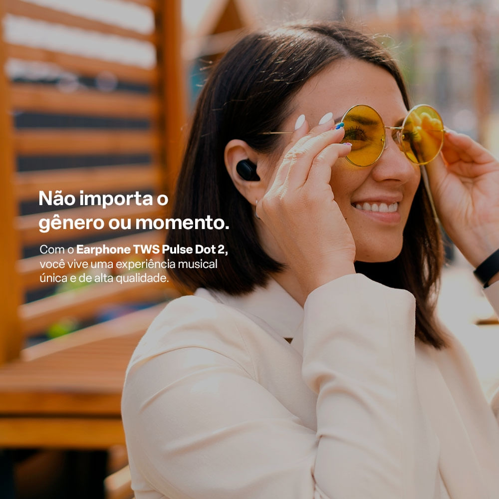 O Pulse Start Dot 2 PH428 foi desenvolvido para quem busca liberdade total na hora de ouvir música, com desempenho consistente e estilo minimalista. Com a avançada tecnologia TWS (True Wireless Stereo), o modelo garante uso totalmente sem fio, som estéreo de alta definição e uma experiência musical imersiva, sem interrupções.
