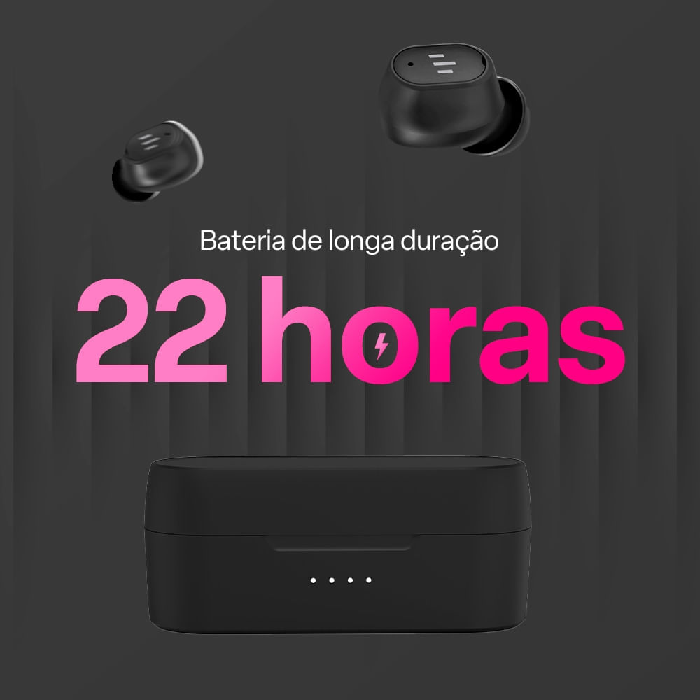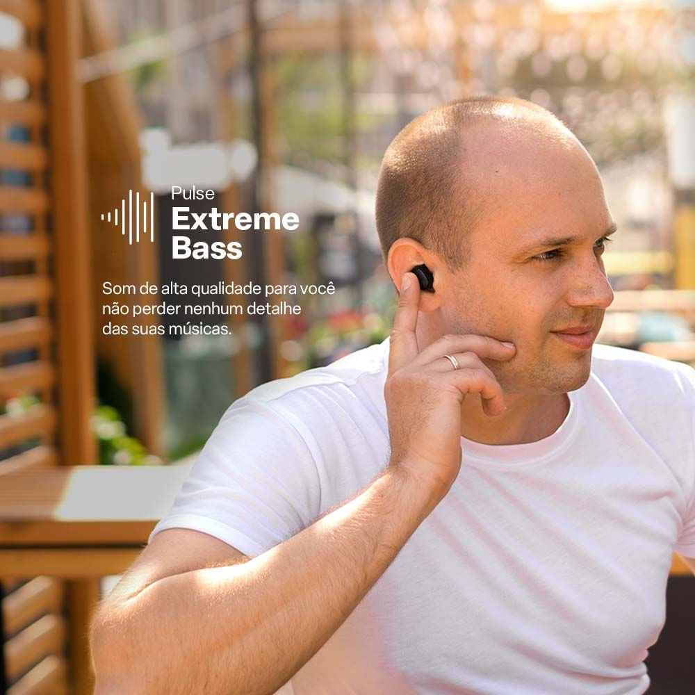 A bateria de longa duração proporciona até 22 horas de autonomia total, combinando os fones e o estojo carregador — ideal para acompanhar seu ritmo em treinos, viagens ou no dia a dia. Já o recurso Pulse Extreme Bass reforça as frequências graves, trazendo impacto e profundidade ao som, sem perder a nitidez dos médios e agudos.