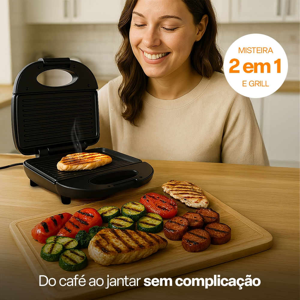 Sanduicheira Tostex Grill Chapa Antiaderente Dupla Ondulada 127v 750w Preta Multi - GO067OUT [Remanufaturado]