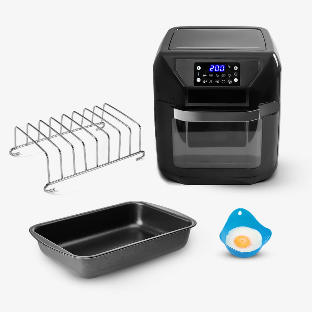 Conta com prateleira para pão, forma de silicone e assadeira para facilitar o preparo de pães e bolos na sua fritadeira elétrica.