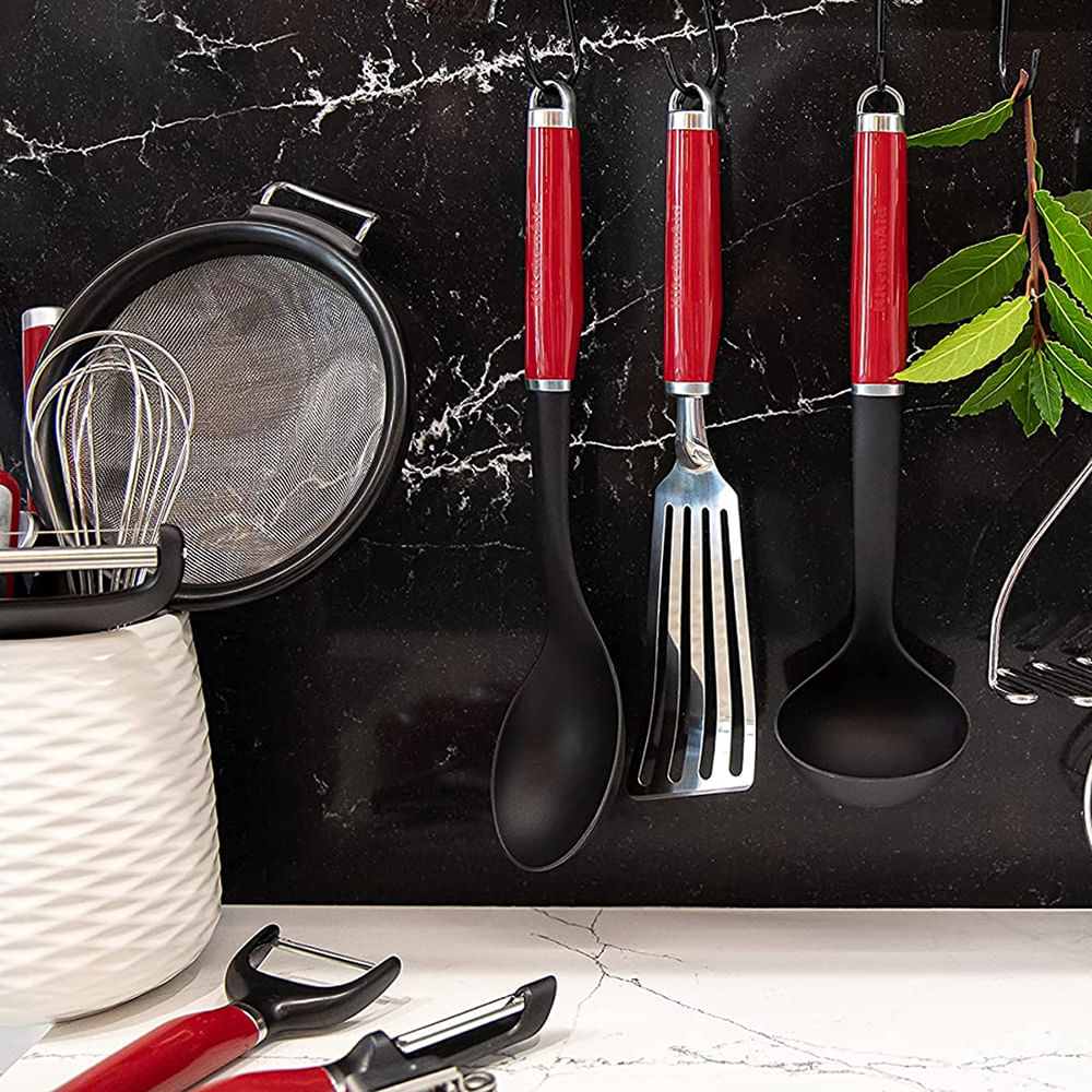 Fatiador de Queijo em Inox Empire Vermelho - KitchenAid Este fatiador KitchenAid corta diversos tipos de queijos, duros e macios, com rapidez e facilidade com para cortar fatias perfeitas e uniformes O fio de corte é feito a partir de aço inoxidável, resistente à ferrugem; e o cabo é feito em plástico, leve e resistente. Cabo confortável, bem balanceado e ergonomicamente projetado para operação suave sob uso pesado. Lavar à mão com água e detergente neutro; enxaguar e secar imediatamente. Pode lavar em lava louças. Medidas Altura: 20cm Largura: 12cm Profundidade: 4 cm Peso: 160g Material: Lâmina: Aço Inox Cabo: Polipropileno Marca: KitchenAid Garantia de 6 meses Sobre a KitchenAid A KitchenAid é uma das mais tradicionais marcas de eletrodomésticos e utensílios de cozinha do mundo. Há mais de 100 anos a KitchenAid vem oferecendo os melhores produtos para a sua cozinha. Seus produtos contam com design moderno e inovador e de altíssima qualidade. Suas batedeiras, liquidificadores, torradeiras, produtos de preparação, são vendidos em mais de 100 países e está presente em todos os continentes.