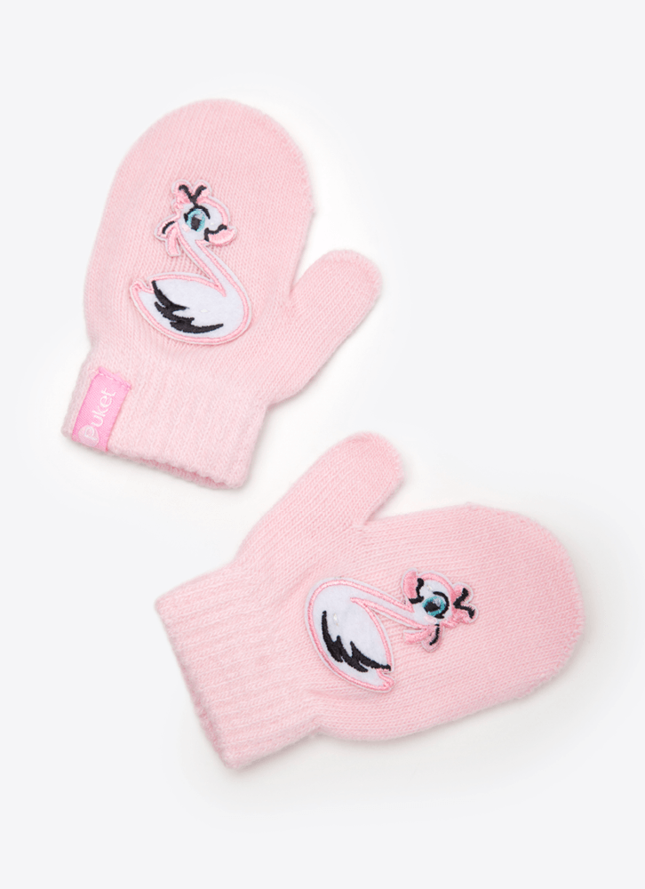Luva para bebês em acrílico. Possui aplique bordado de cisne.
