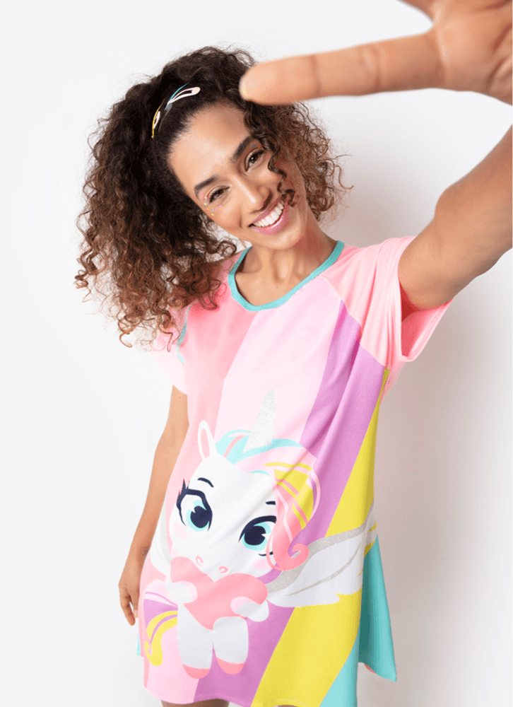 Camisola Manga Curta Viscolycra Feminino Unicórnio Love